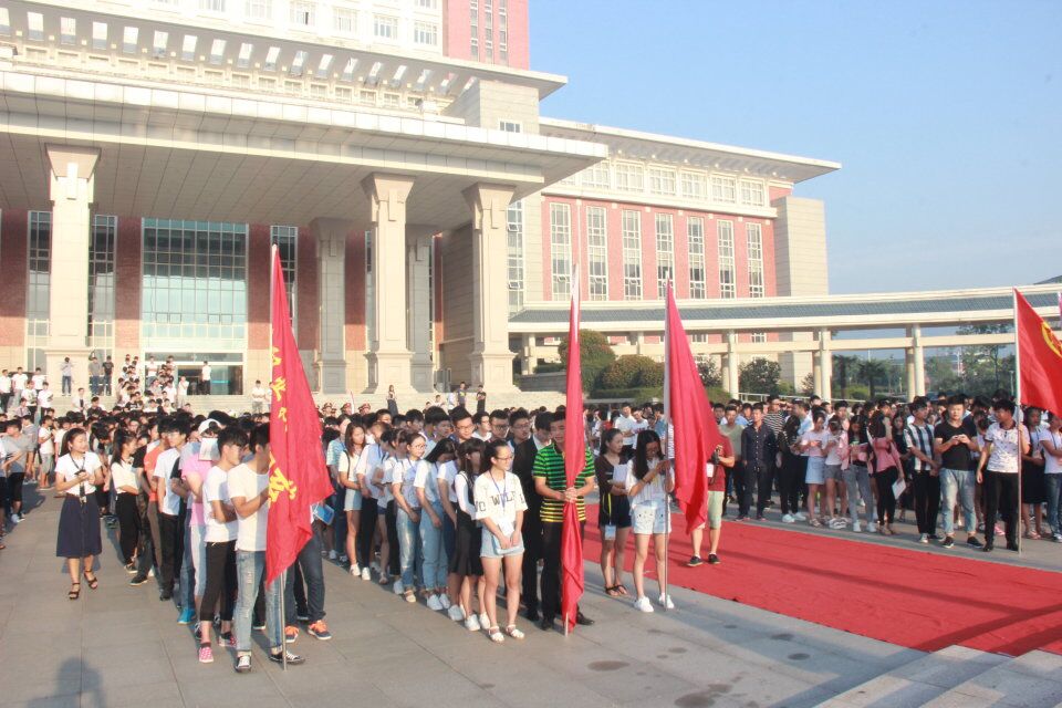为纪念中国人民抗日战争暨世界反法西斯战争胜利71周年,同时迎接新学期的到来,9月1日上午7:00,我院团委在国旗下举办主题升旗仪式,学院近千名学生参加仪式。