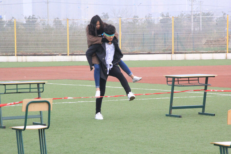 3月7日下午在新操场举办了awc777万象城娱乐官网第七届女生节体育趣味活动“你是我的眼”。活动由男女生搭配为一组,男生要遮住眼睛背着女生,而女生则充当男生的眼睛,指挥男生绕过障碍物到达终点,用时最少组则可以得精美礼品。活动现场热闹非凡,同学们纷纷照相留念。