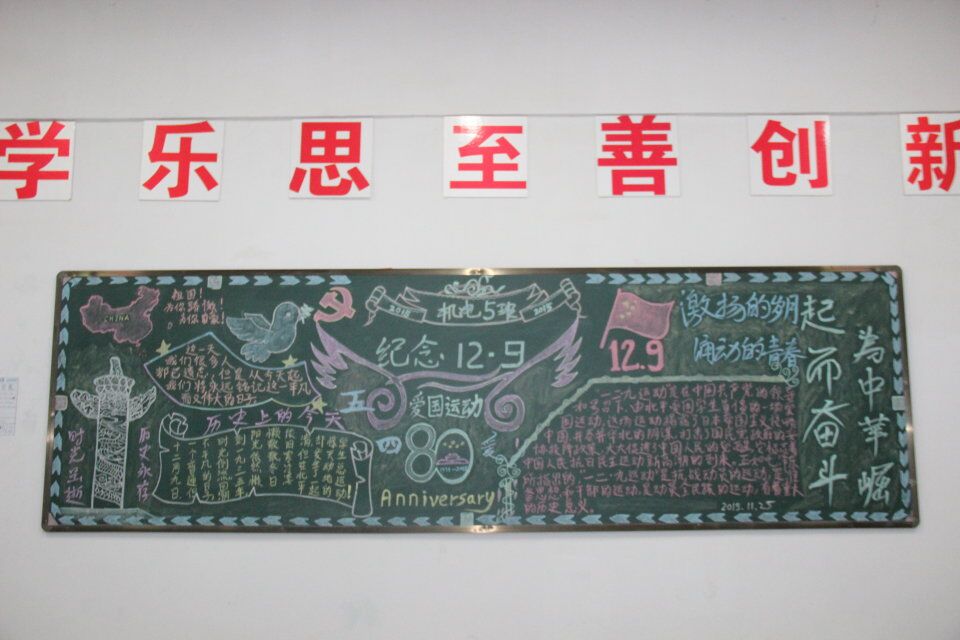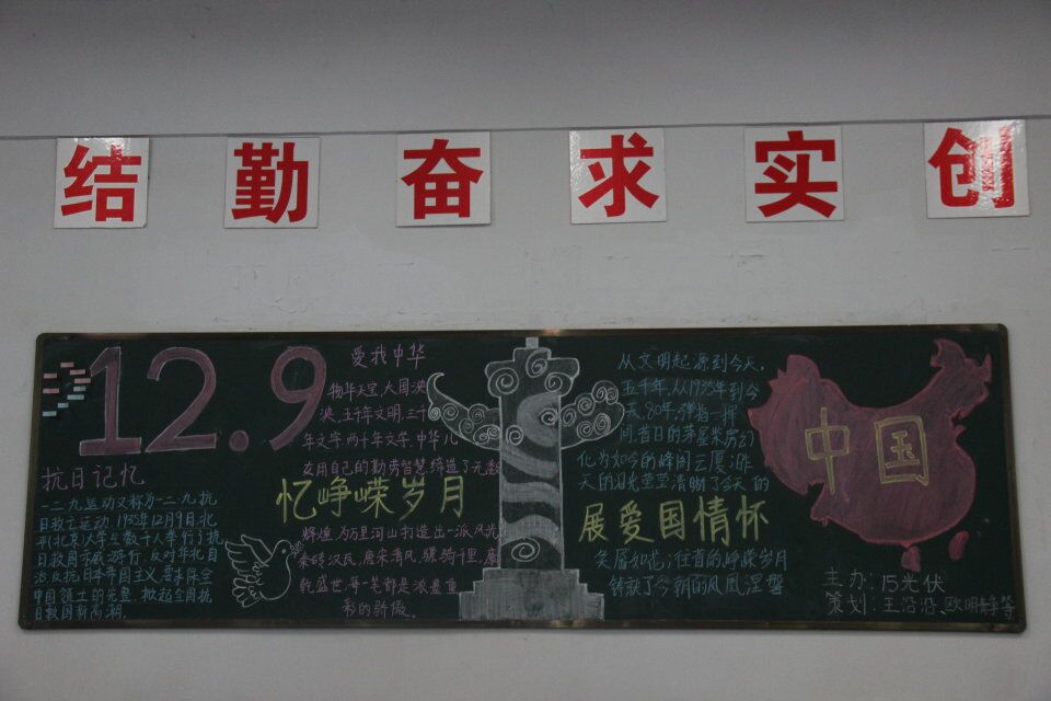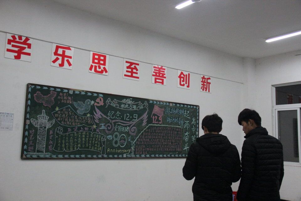 2015年12月4日,为了纪念“12.9”运动80周年,院团委组织开展了主题黑板报检查评比活动。