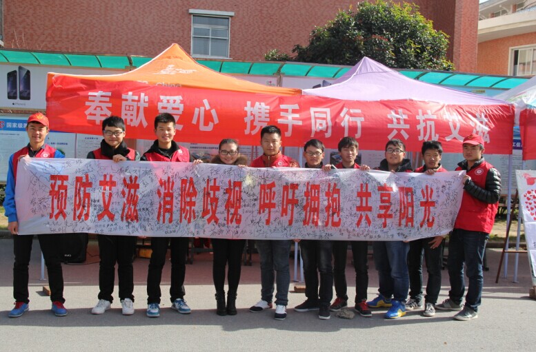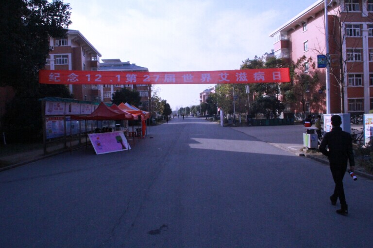 2014年12月1日是第27个世界艾滋病日,当天中午院红十字会在女生宿舍一号楼前开始了爱的传递,主要目的是要进行全面预防.积极治疗.消除歧视.宣传有关艾滋病方面的知识。