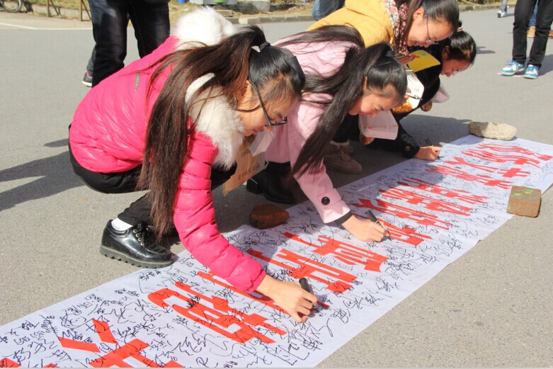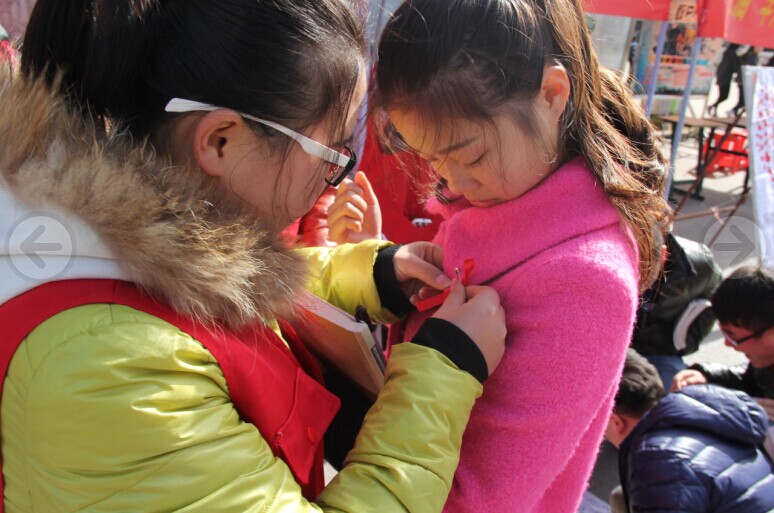 只要人人都献出一份爱,世界将变成美好的人间。宣传标语的横幅让同学们签字传递正能量,然后给签字的同学带上红丝带,红色象征着希望,红色象征着你有一颗炽热的心,青春的激昂,梦想的起航是当代青少年所拥有的良好品质。青春的红丝带迎风飘扬,它在告诉人们只要有爱,只要你愿意奉献,你的生活也将会因此而变得丰富多彩。