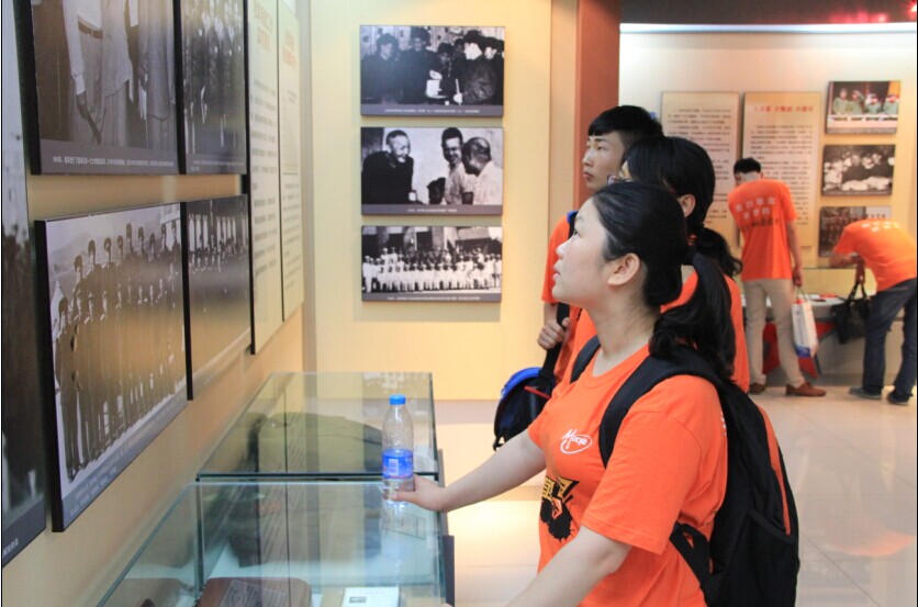 队员们首先来到了金寨县革命博物馆。金寨县革命博物馆位于幽深的山脚下,由7个展厅构成,记述了发生在安徽省金寨县可歌可泣的革命历史,我们仿佛回到了那激情燃烧的岁月,在漫天硝烟中穿行。尤其在了解了洪学智将军的生平后,我们深深感受到老将军兼济天下,心思故土的人的人性光辉。随后,我们又前往金寨县烈士纪念馆、纪念碑、红军纪念堂、洪学智墓等处,在纪念碑前,师生们们鞠躬默哀,深切悼念为革命事业献身的烈士。