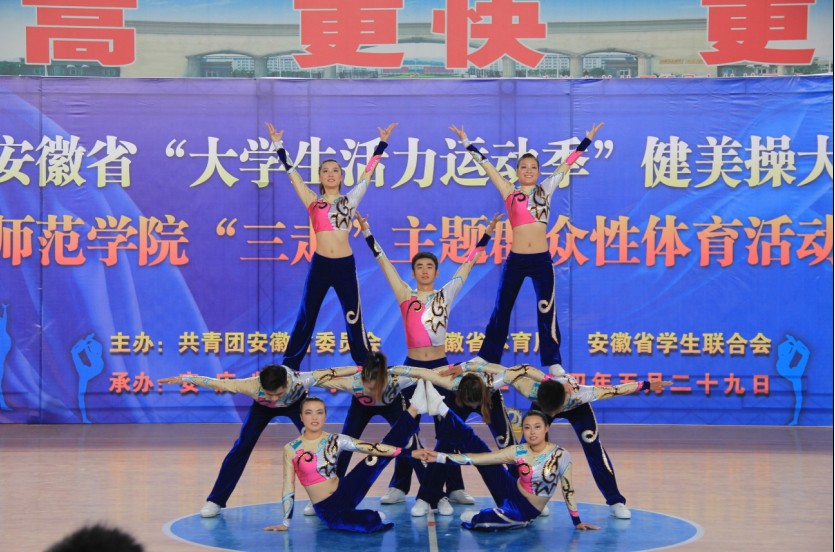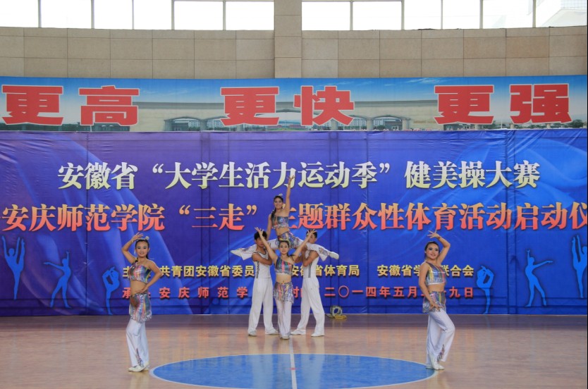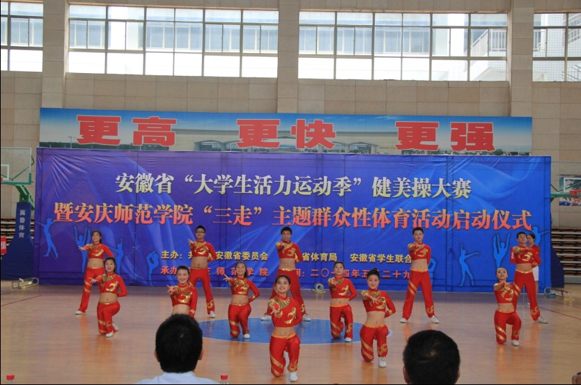 5月28日—29日,由共青团安徽省委员会、安徽省体育局、安徽省学生联合会主办,安庆师范学院承办的安徽省“大学生活力运动季”健美操比赛在安庆师范学院体育馆隆重举行。awc777万象城娱乐官网运动健儿在院团委刘杰、基础部王厚红的带领下,参加了此次比赛。