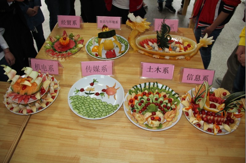 主持人宣读比赛规则后比赛正式开始,首先由工作人员检查了水果及用具,保证了比赛的公正性、公平性。每个系的参赛选手都拿出各自的创意,水果经过参赛选手的加工后变得栩栩如生。最后汽车系代表队获得一等奖、机电系代表队获得二等奖、食品工程系代表队获得三等奖。(文/图:院团委)