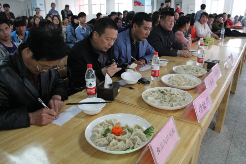 “乐在美食,你我共享”。4月16日下午,第二届大学生美食节系列活动之“食全食美”包饺子比赛拉开了序幕。本次比赛共有八支队伍参加,每个队伍有1名老师和3名学生组成,现场同学们情绪高涨,气氛热烈,喊着嘹亮的口号为他们鼓劲加油,参赛选手们也使出浑身解数,默契配合。最终,食品与环境工程系以91分的高分夺得了桂冠,经济贸易系、汽车工程系以90.25分并列了第二名。最后餐饮中心胡老师对各个队伍进行了精彩的点评。