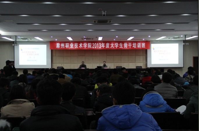 汪上副院长就《现代管理法则与管理能力培训》为主题向学生干部讲解如何在工作中提高管理质量;团市委副书记鲁凯就以《高校团学干部工作技巧与方法》向大家讲述“学生干部是连接学校领导和学生之间的桥梁”。滁州学院宣传部部长王诗根以《微情给力,青春更给力》为主题为大家介绍新媒体微博对现在社会的重大作用。学生处处长李平权向学生干部介绍关于《学生干部的角色定位》,通过对“何为学生干部”“身为学生干部要做到哪些”等方面向我们诠释“学生干部”这一职位。思政部主任李爱红就《十八届三中全会精神解读》为主题向大家讲解,老师的讲解让我们深刻认识到我国当前实施的一系列发展方针。院团委书记王蓓蓓就《青春托起中国梦》为大家讲述年轻人的梦想与国家民族兴衰荣辱紧密相连,要勇敢追求自己心中的梦想,并付诸行动,为实现“中国梦“增添新的活力。