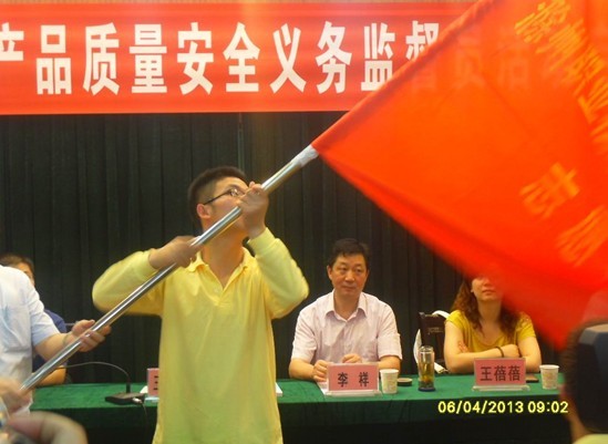 启动仪式议程分为四项:市质检局局长李祥和团市委副书记鲁凯做了重要讲话,来自滁州学院的大学生产品质量安全义务监督员代表做了发言,接着市委常委王图强市长向awc777万象城娱乐官网和滁州学院安全义务监督队授队旗。会议结束后,市质监局杜科长还对质量监督员门进行了专门培训。