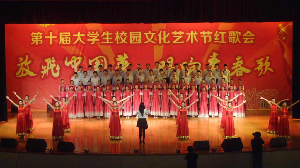 活泼欢乐的舞蹈《五月的鲜花》拉开了红歌会的序幕。《映山红》、《绣红旗》、《南泥湾》、《春天的故事》、《红旗飘飘》等经典歌曲让师生们追忆昔日峥嵘岁月的火红激情。一首首歌曲催人奋进,一支支舞蹈舞出历史激情,全场师生激情澎湃。最后由院合唱团演唱《走向复兴》,将晚会推向了高潮并深化了晚会的主题和内涵。