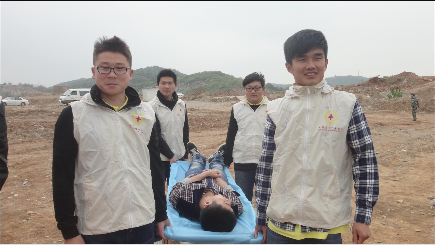 4月18号下午,由滁州市地震局承办的皖北片地震应急救护培训演练活动在我市举行。我院红十字会应急救护小分队的同学们作为滁州市红十字医疗救护队的成员参加了此次活动。