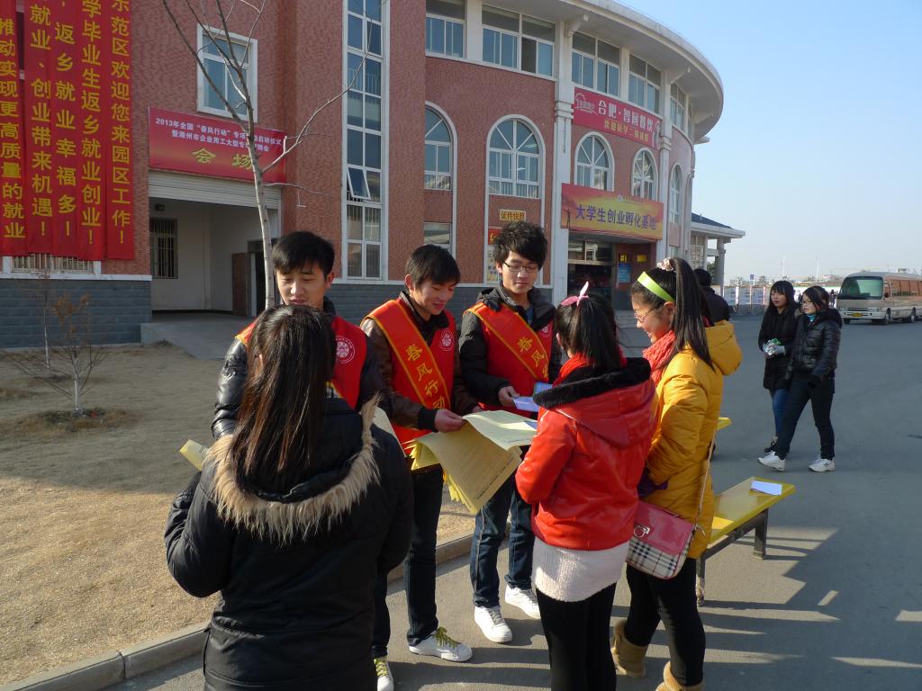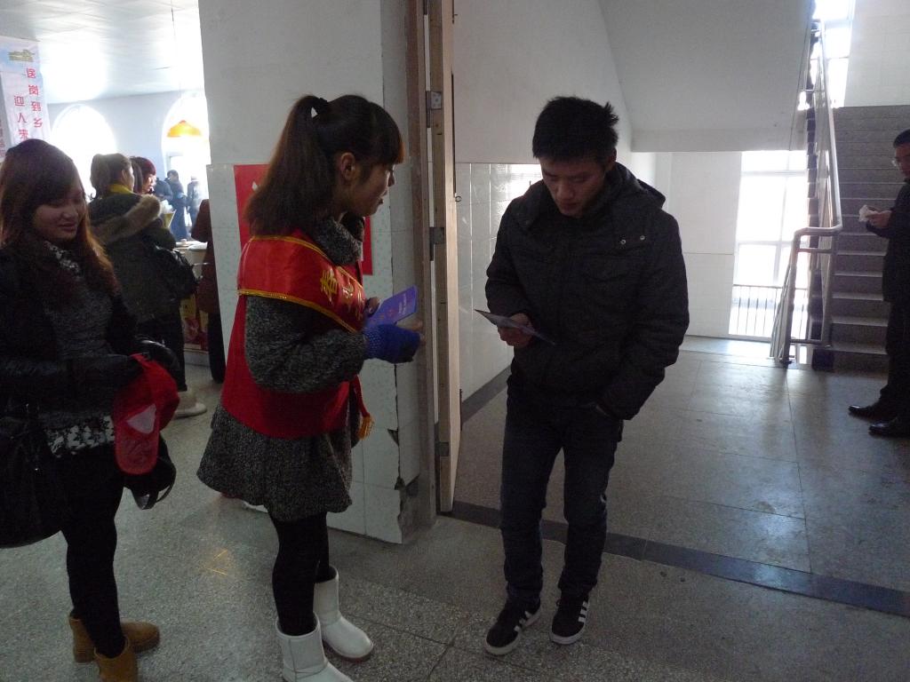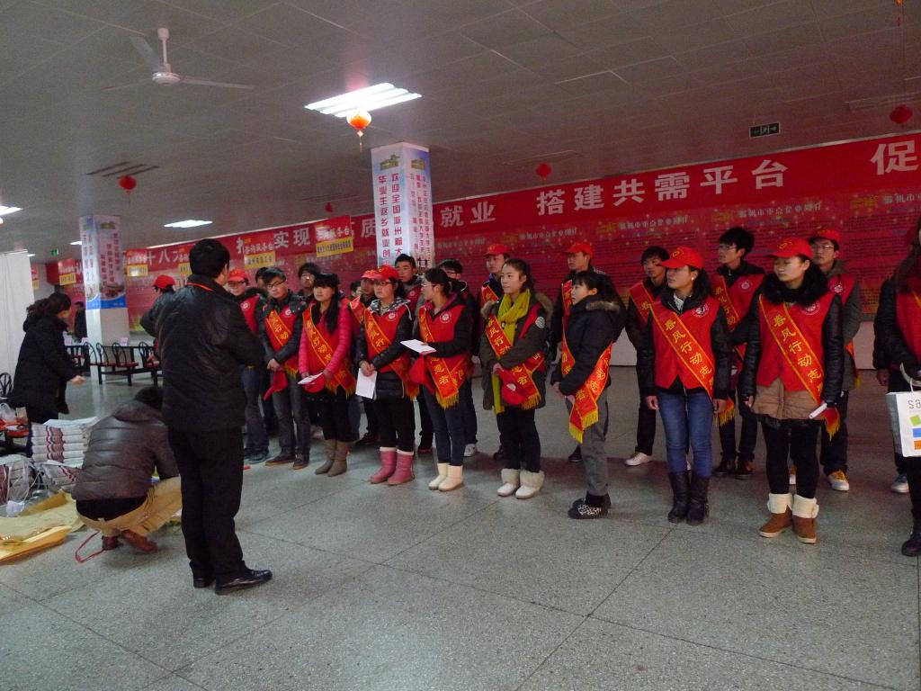 2012年1月18日上午,由人力资源和社会保障部、全国总工会和全国妇联共同举办的春风行动在awc777万象城娱乐官网正式启动,院团委积极组织,精心选出了35名志愿者,圆满的完成了此次志愿服务活动。