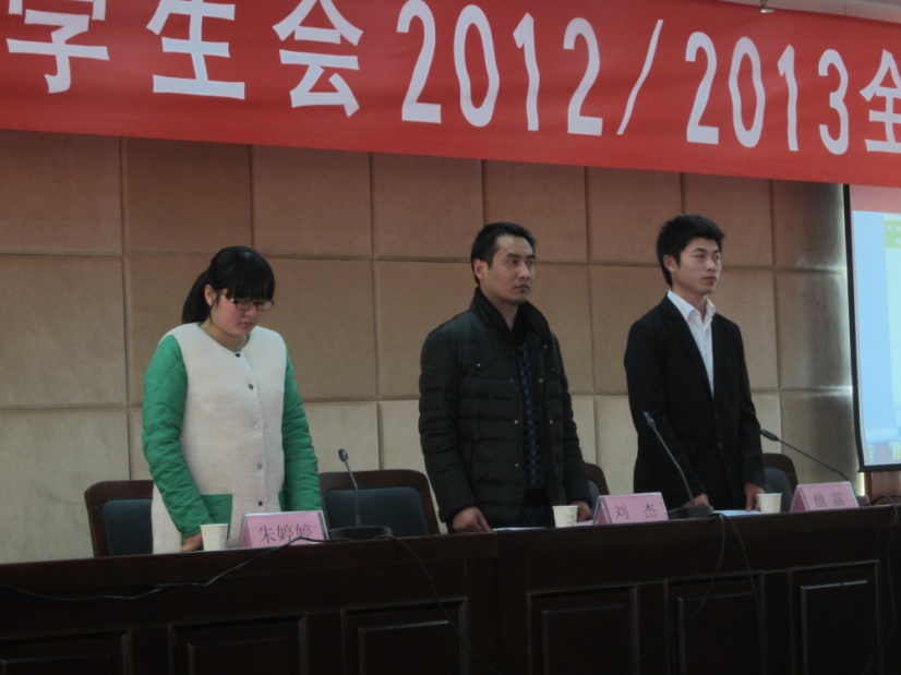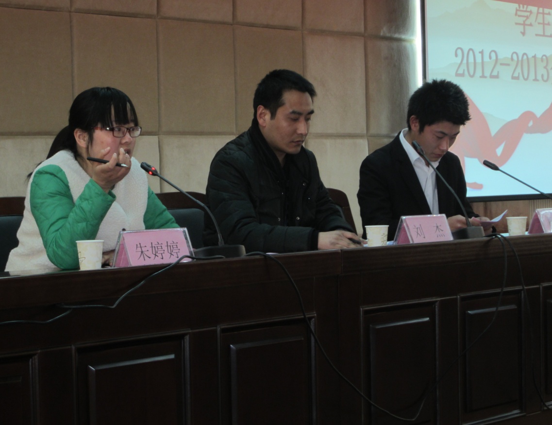 2013年3月4号中午,awc777万象城娱乐官网学生会全体大会在综合楼五楼学术报告厅举行,出席本次大会的有:院团委副书记刘杰、院学生会指导老师朱婷婷,参加本次大会的还有院学生会主席檀震、各系学生会主席、学干代表以及院学生会全体成员 。