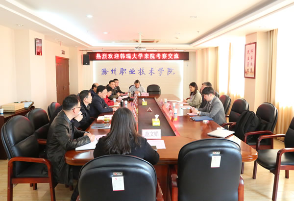 3月23日下午,韩国韩瑞大学国际协力处处长金镇宇一行访问我院。院党委副书记、院长李柱梁,院党委委员、副院长江洁出席座谈会,学院办公室、教务处、成教院、传媒工程系等部门负责人及相关人员参加座谈会。