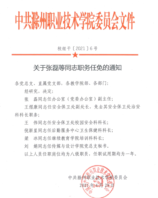 关于张磊等同志职务任免的通知