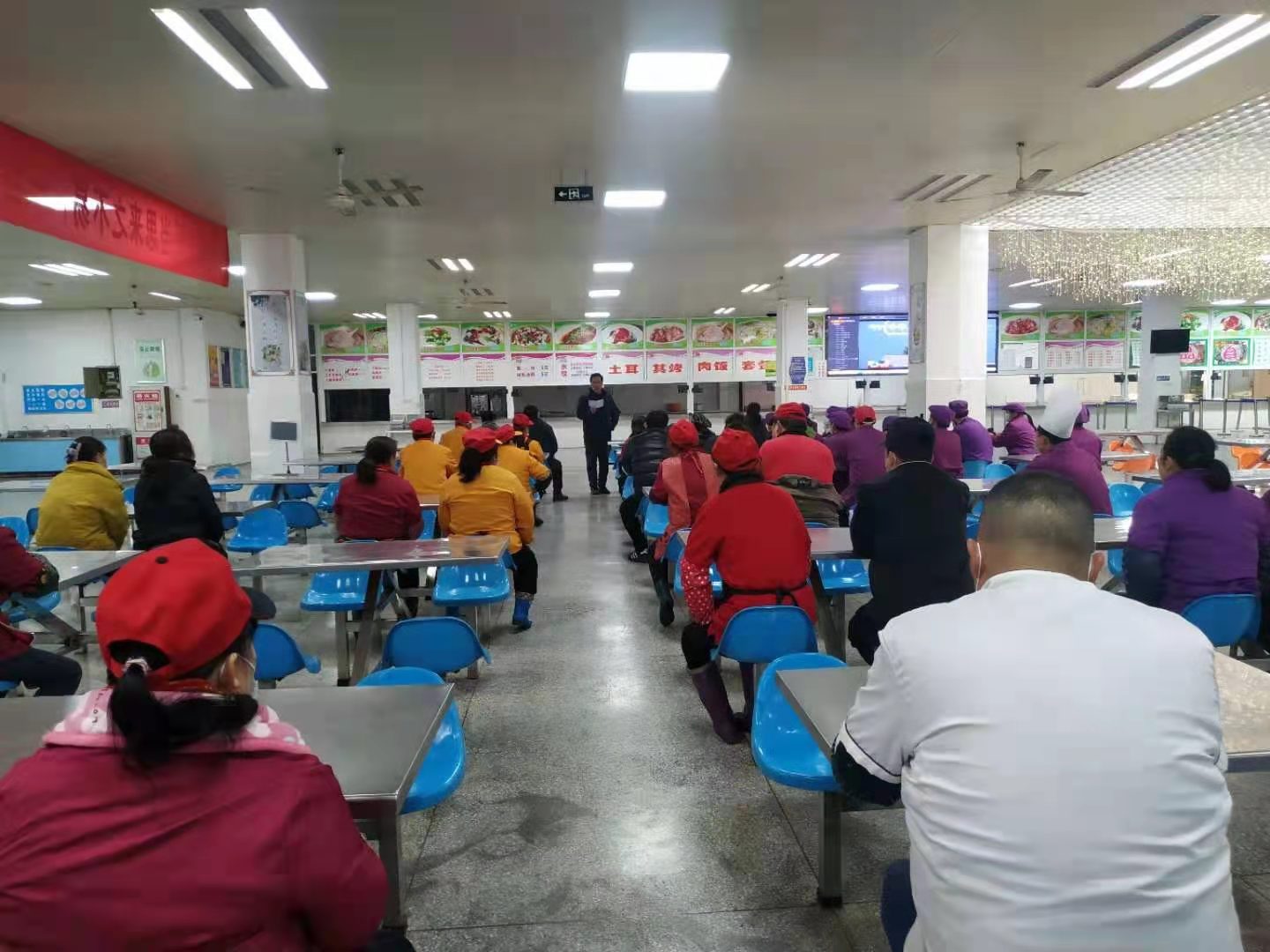 为科学做好食堂疫情防控,消除食品安全隐患,增强食堂从业人员的服务意识,保证师生饮食健康安全。3月6日上午,后勤服务中心在食堂一楼召开食堂从业人员食品安全培训会议,会议由餐饮管理科科长胡永光主持。