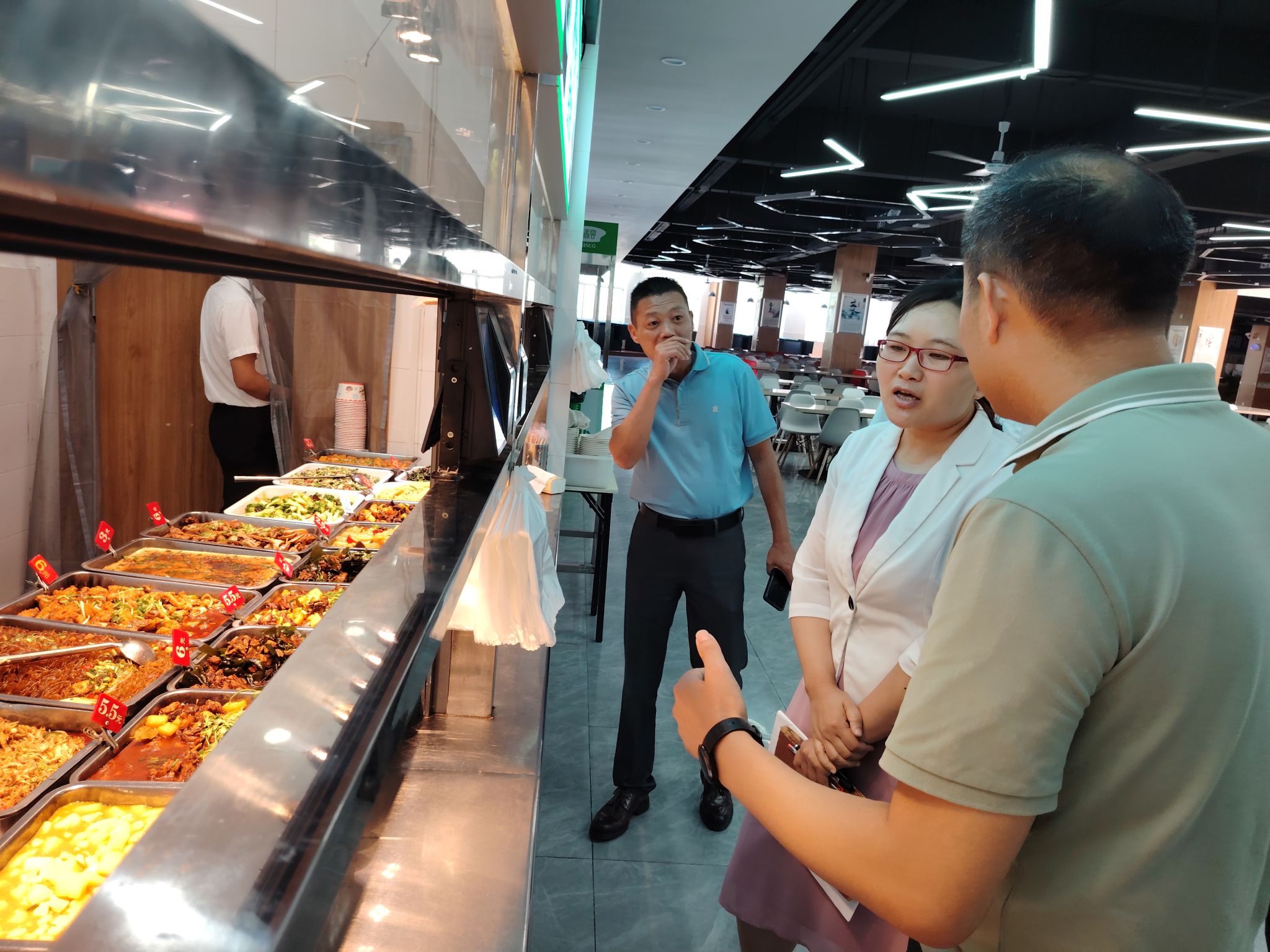 随后,孙静一行实地察看了食堂后厨、操作间、烹饪间、仓库等场所,详细了解了大宗食品进货渠道、餐具消毒过程及留样管理等工作,并进行深入交流探讨。