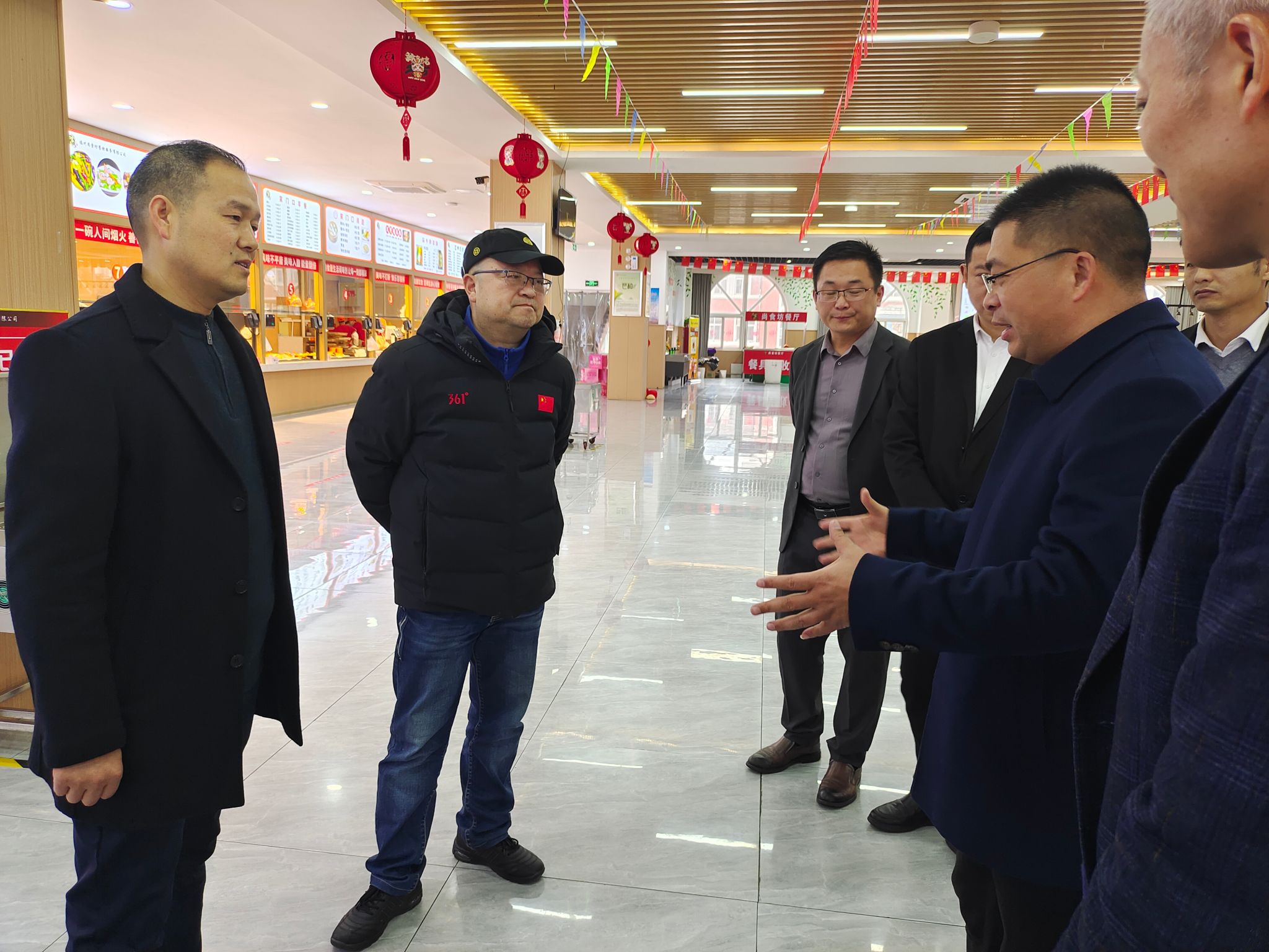 董培晓、徐文生一行实地参观了学校食堂后厨操作间、仓储、就餐区及特色餐饮窗口等。过程中询问食堂有关情况,顾宏才都一一解说。