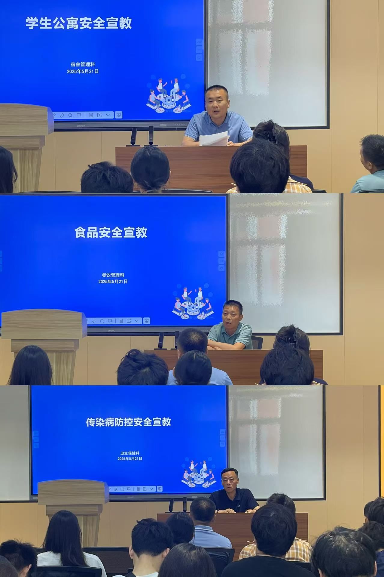 会上,公寓管理科科长李腾飞介绍了学生公寓的基本情况,围绕公寓安全管理、服务保障等方面进行宣讲,强调学生公寓不仅是休息的场所,更是学生成长的第二课堂。餐饮管理科科长潘刚结合日常商贸、食品安全监管和保障服务等七个方面为学生进行宣讲,分享食品安全知识,提高了学生的健康饮食习惯和食品安全意识。卫生保健科科长倪新星从校园常见传染病的流行特点、传播途径、人群易感性、防控措施等方面展开宣讲,鼓励同学们加强体育锻炼,合理饮食,保持充足睡眠,提高自身免疫力。