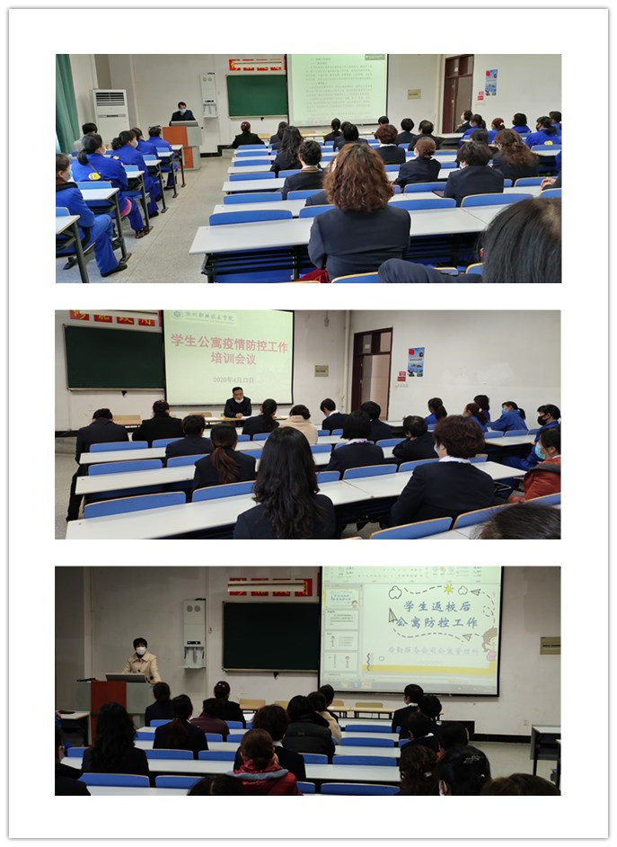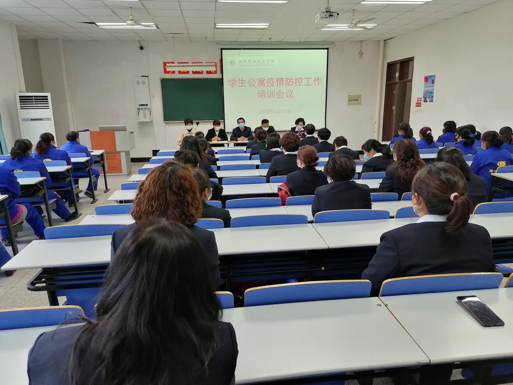 为做好学生复课前的疫情防控准备,保证开学后良好的住宿秩序。4月13日下午,后勤服务中心组织召开学生公寓疫情防控培训会议。公寓管理科、卫生保健科、万顺物业公寓管理中心全体宿管员、保洁员共50余人参加了本次培训。