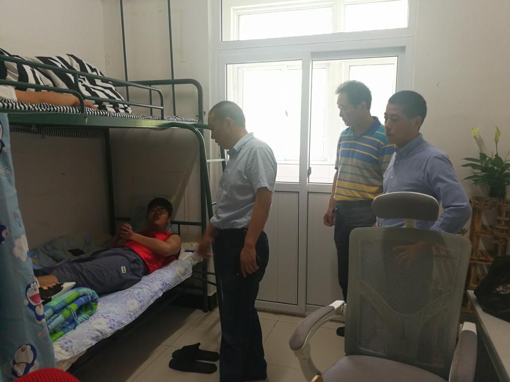 后勤公司总经理吴杰在检查中看望“爱心宿舍”因打篮球受伤的学生