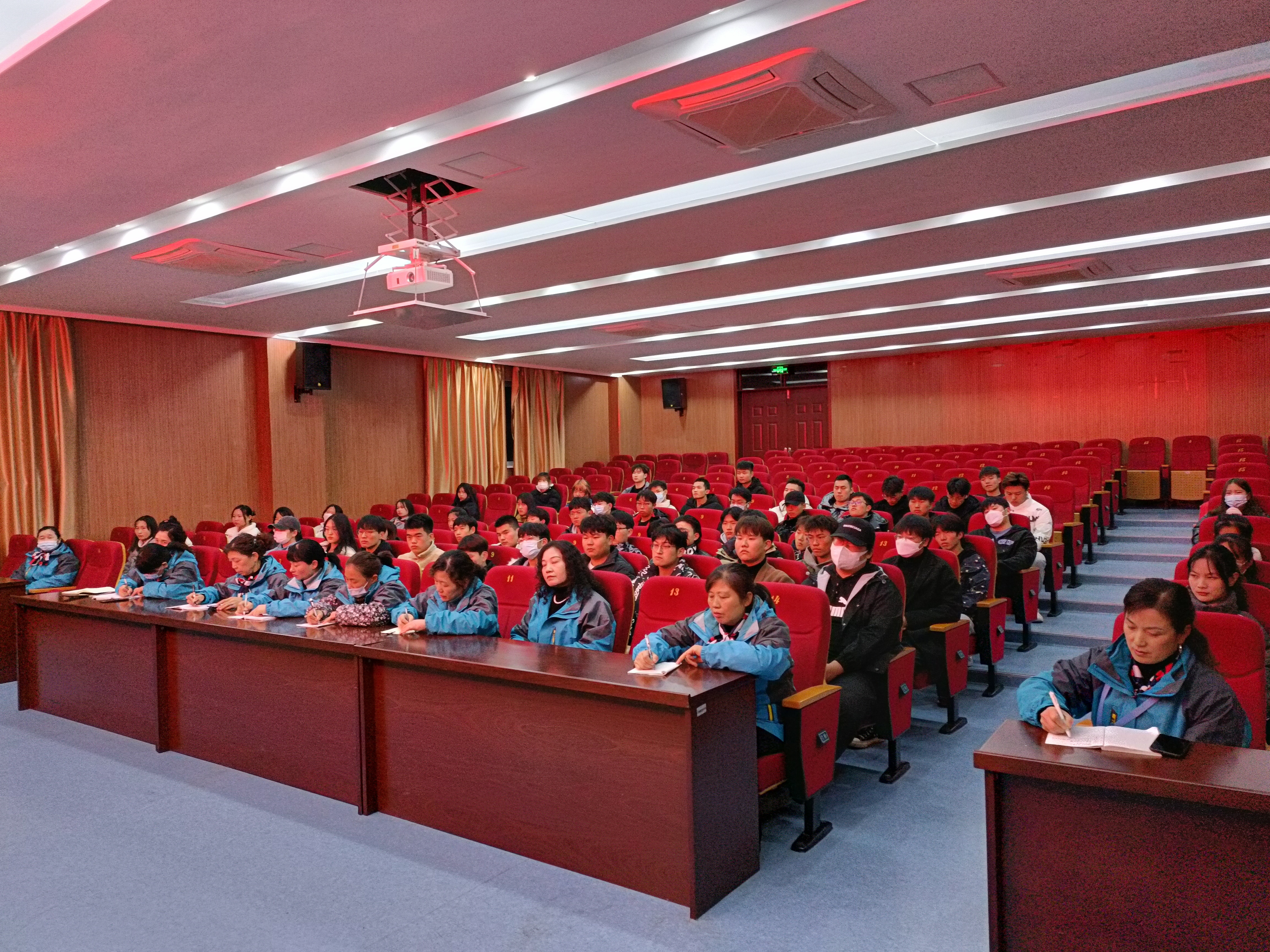 为进一步做好学生服务工作,加强与学生群体的交流和沟通,12月9日晚19时,后勤服务中心公寓管理科在南阶205教室召开2021年度学生公寓6s管理工作座谈会暨学生楼层长换届表彰大会。公寓管理科陆凤林科长,万顺物业项目经理梁发妹,公寓中心主任朱明春及相关人员和学生代表80余人参加了会议,会议由公寓中心主任朱明春主持。