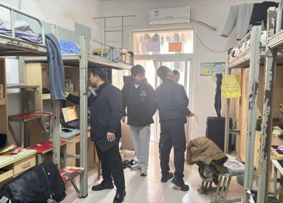 检查人员深入3号、11号等楼宇学生宿舍进行了检查。重点查看了寝室用电安全、违规使用电器、是否存在管制刀具等行为,检测过程中发现一些学生存在电插板放置在床上、寝室存在规定尺寸水果刀等违规行为,检查人员现场对这些寝室的学生进行了指导教育,并要求其立即整改。李腾飞要求,安全工作无小事,各位到场辅导员回去之后要把本次检查中存在的问题反馈给学院领导,同时,各教学院部要安排相关人员加大对学生宿舍的检查力度,保证学生公寓安全稳定。
