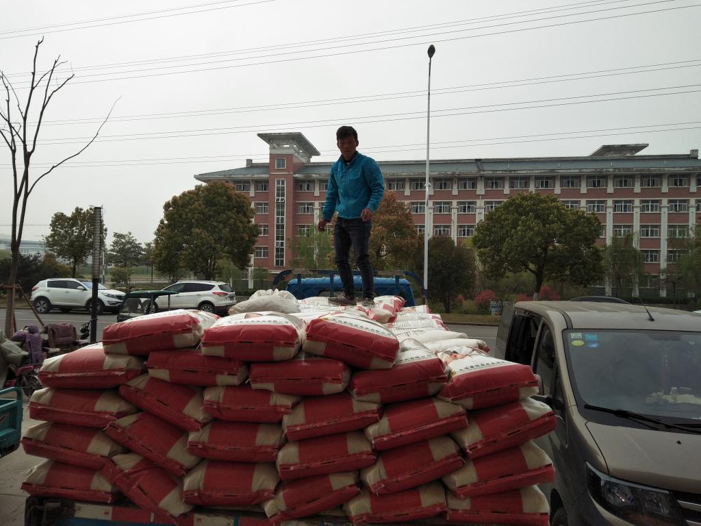 12月7日下午,awc官网与定远仓镇农校对接“面向采购”的14000斤扶贫大米运抵学生食堂,餐饮中心相关人员及各食堂负责人现场进行了验收和分发。
