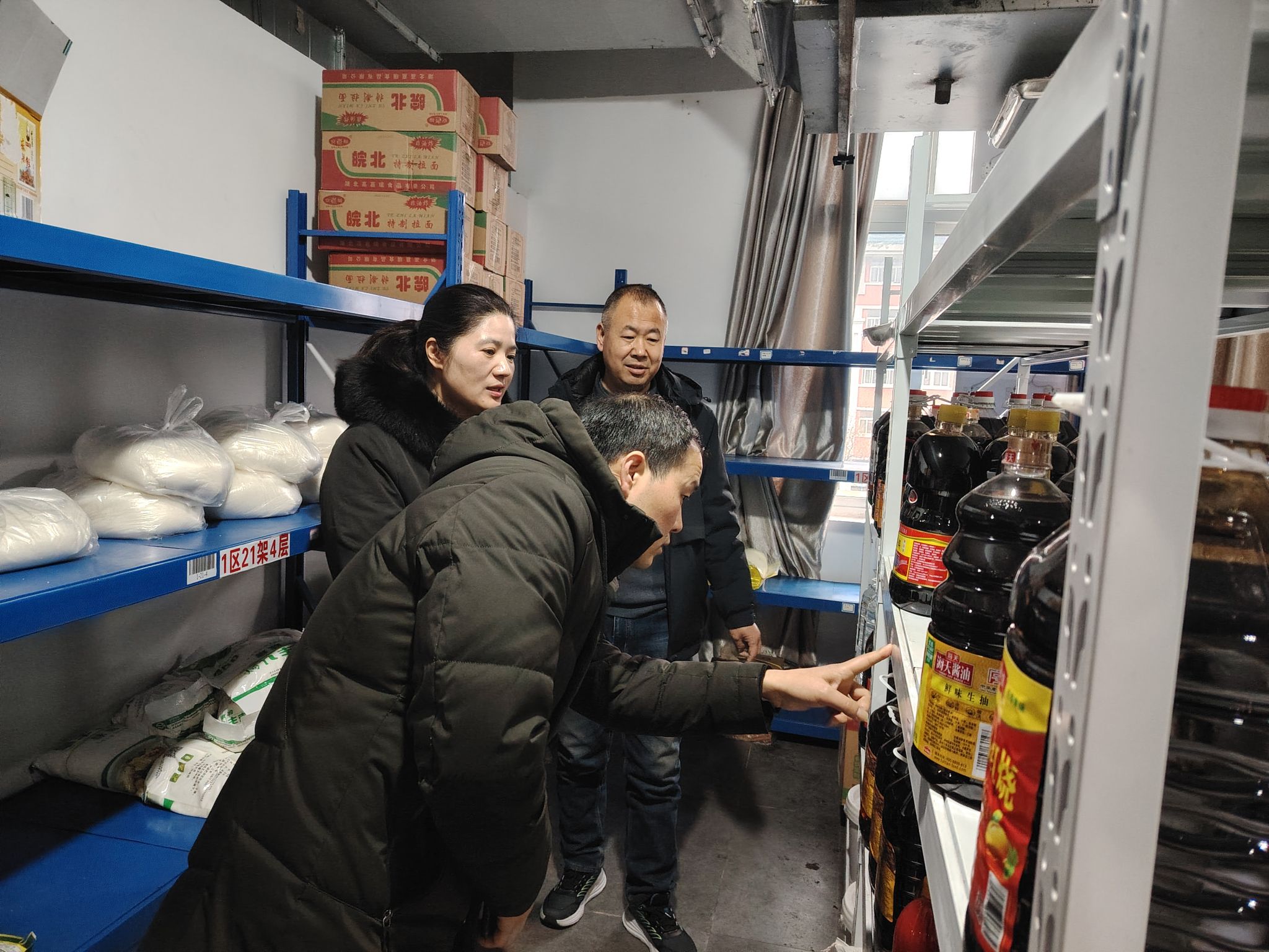 后勤服务中心就食堂是否严格落实进货验收和台账记录制度进行了检查,并以食堂索证索票、消毒记录、食品留样、从业人员健康证明等落实情况为切入口,对食堂后厨、售卖区、洗碗间等重点区域的“三防”设施设备、大宗食品贮存、复用餐具消毒、后厨环境卫生等方面进行了检查,要求环境卫生干净整洁,无霉斑、鼠迹,严防食品安全风险,预防食源性传染病发生。另外,对食堂消防设施设备进行了安全隐患排查,仔细查看了各区域电器、炉灶、管线等设施设备,坚决杜绝安全隐患,确保食堂安全稳定运行。