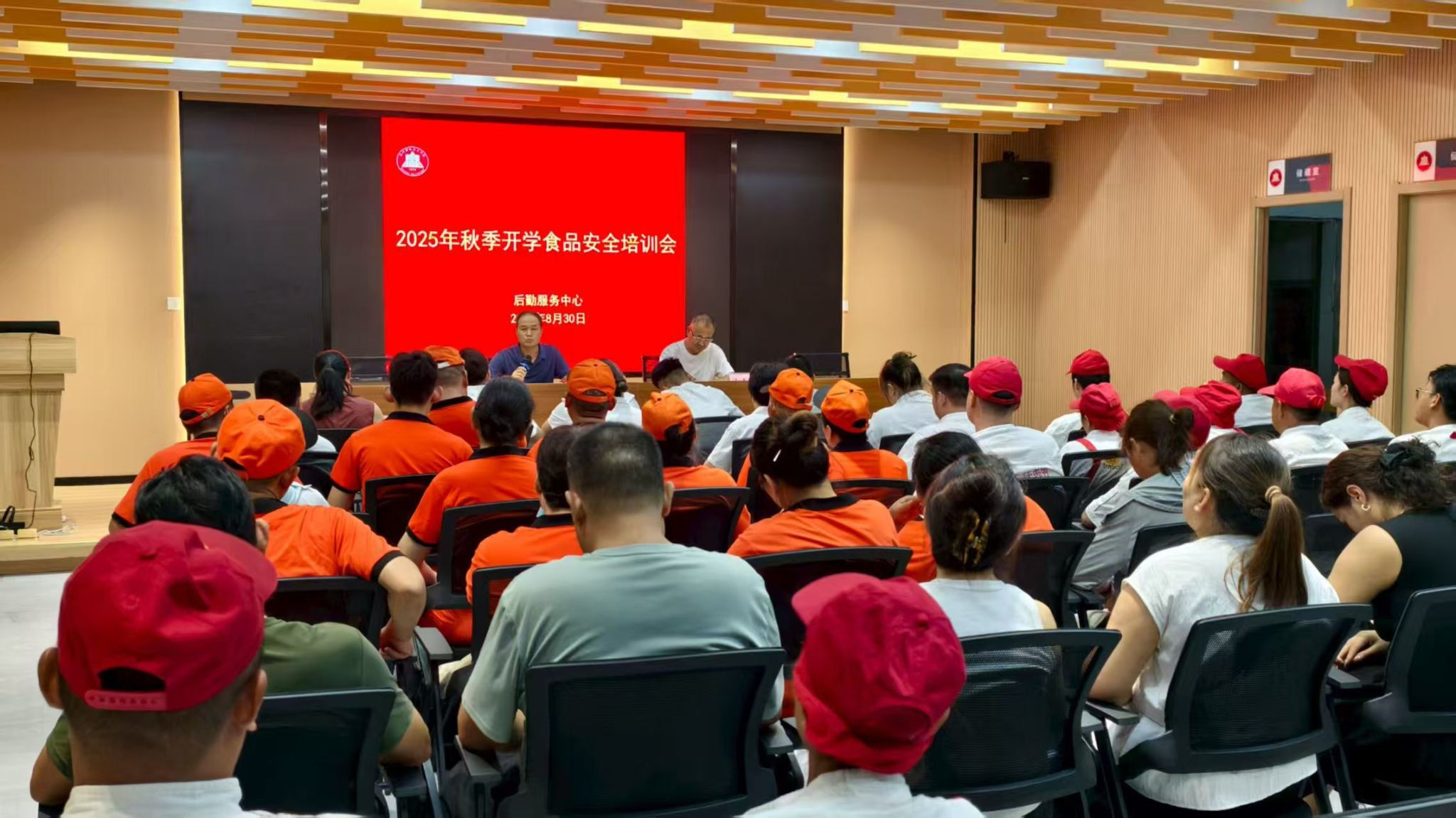 为全面做好2025年秋季学期开学食品安全工作 。8月30日下午,后勤服务中心在一站式学生社区报告厅组织开展2025年秋季开学前食品安全专题培训与考核。各校内餐饮企业项目负责人、现场管理人员、食品安全总监、食品安全员、食材采购人员、仓储管理人员、清洗消毒人员、各档口负责人,后勤餐饮科人员等60余名关键岗位人员参会。后勤服务中心顾宏才主持培训,后勤餐饮管理科王书籍老师进行培训。