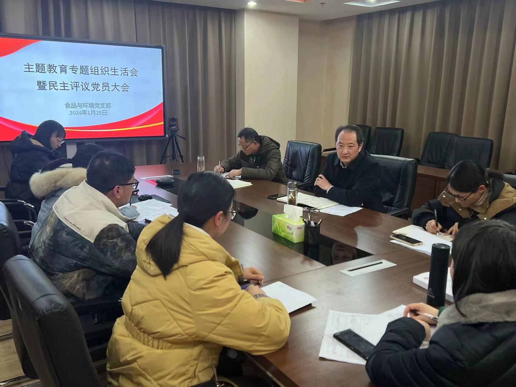 1月25日下午,食品与环境党支部2023年度主题教育专题组织生活会暨民主评议党员大会在综合楼802会议室召开,校党委副书记、校长许雪峰出席会议并讲话,会议由食品与环境工程学院党总支副书记张功会主持,支部全体党员参会。