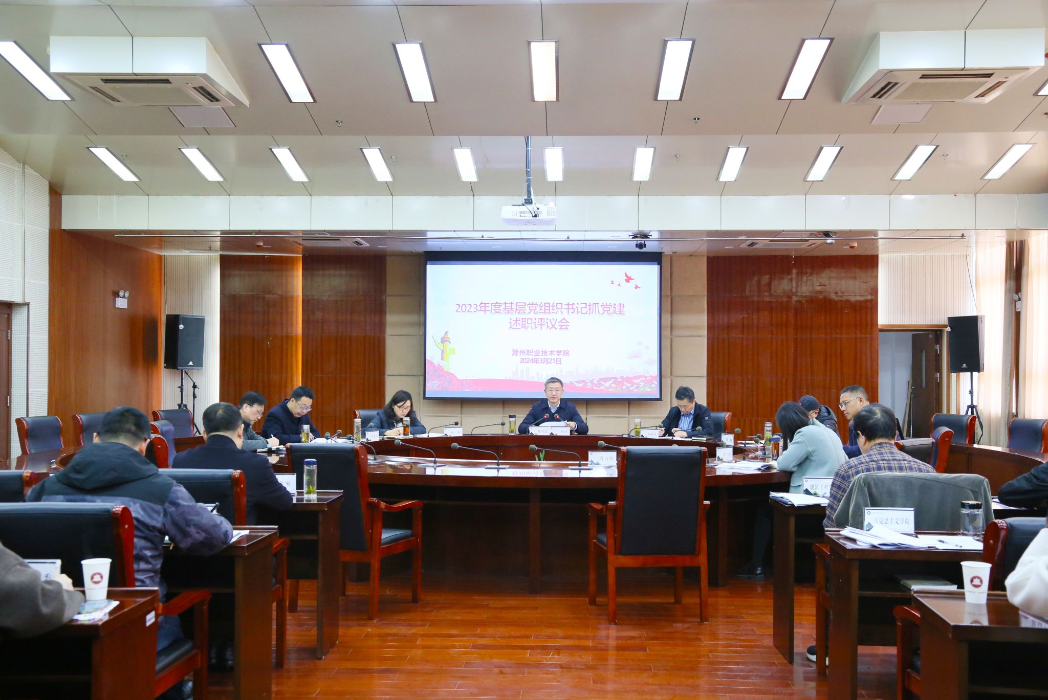 3月21日上午,学校召开2023年度基层党组织书记抓党建工作述职评议会议。校党委书记曹付忠主持会议并讲话。校领导杨家庆、孙静、胡凼、李平权、李超、王冬、王宇出席会议。各党总支(直属党支部)书记、有关职能部门负责同志参加会议。