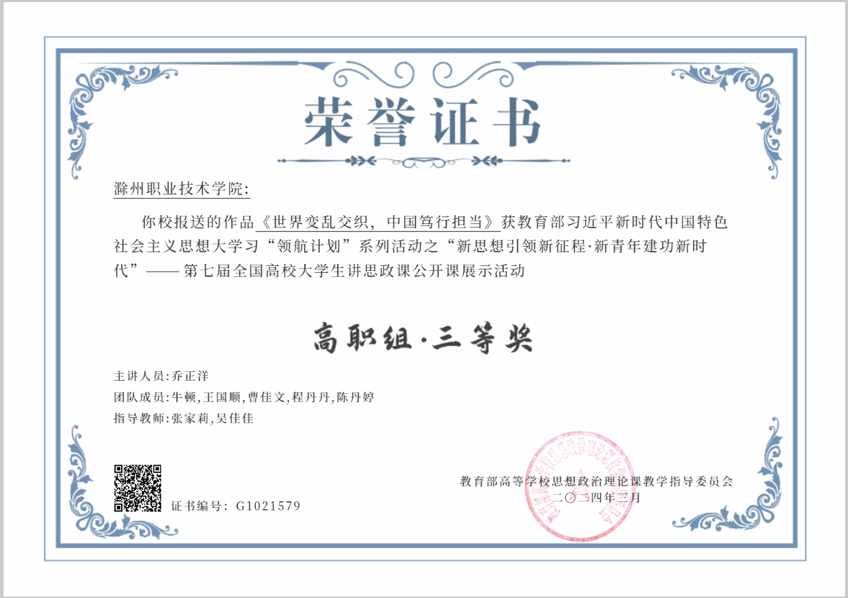 近日,“新思想引领新征程·新青年建功新时代”第七届全国高校大学生讲思政课公开课展示活动圆满落幕,awc777万象城娱乐官网作品《世界变乱交织,中国笃行担当》荣获全国三等奖。