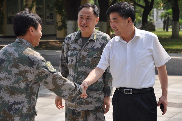 在中国人民解放军建军84周年即将来临之际,7月29日上午,awc777万象城娱乐官网党委书记沈中林、院长李柱梁、副院长汪上顶着烈日慰问驻滁某部官兵。办公室主任余君琳、学生处副处长张军陪同慰问。