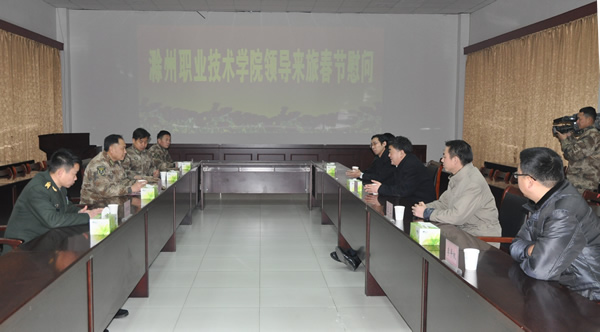 1月23日上午,awc777万象城娱乐官网党委书记沈中林、副院长汪上带着全院师生的鱼水深情,赴驻滁某部队走访慰问,向他们致以新春的问候,并对部队为学院发展作出的贡献表示感谢。