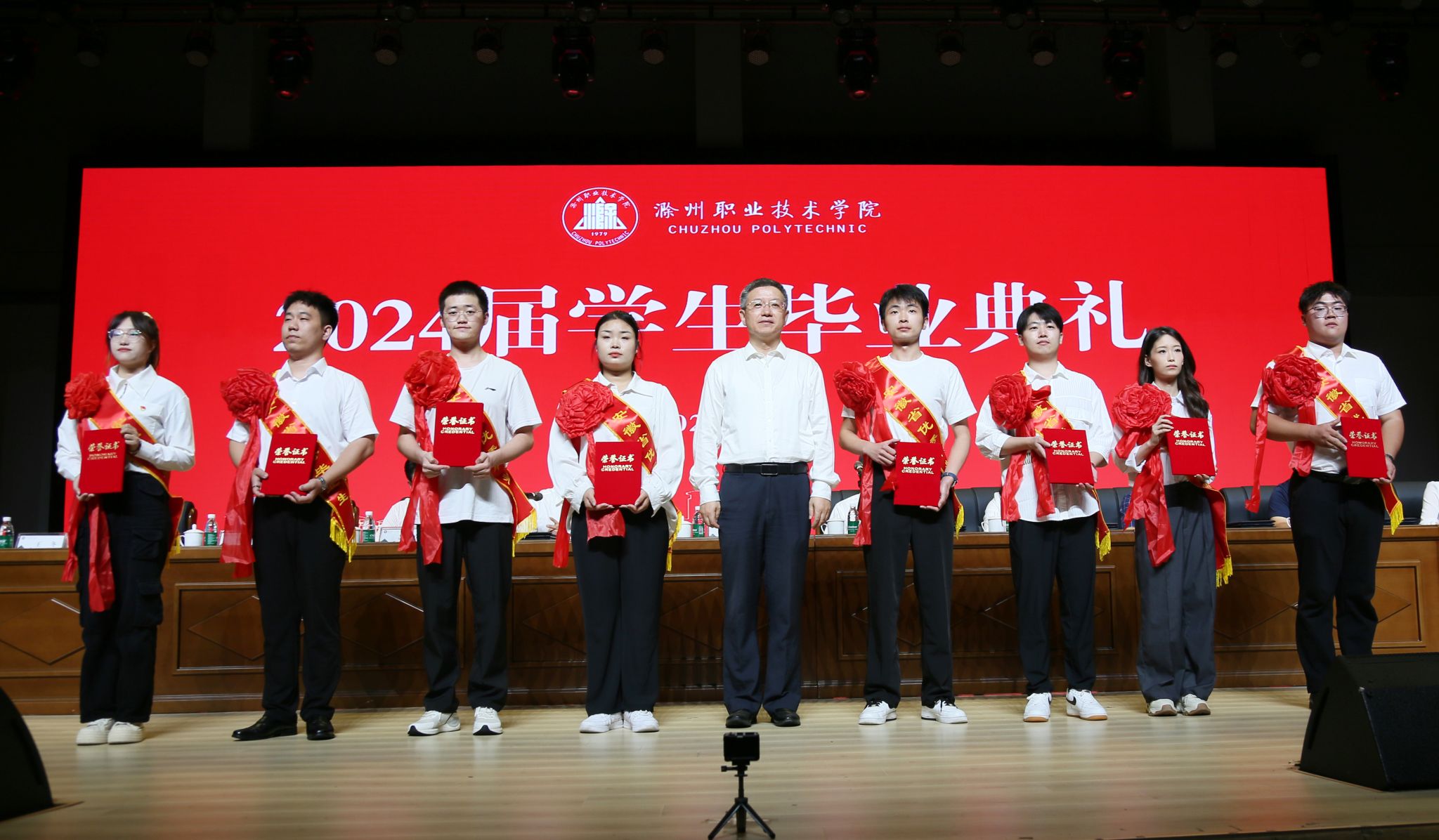 校党委书记曹付忠向获表彰的8名省级优秀毕业生代表颁奖。
