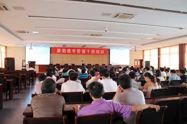为进一步提高学院教学管理水平,全面推进教学管理工作的科学、规范化建设,8月22至26日,学院举办了为期三天的暑期教学管理干部培训班。院长李柱梁、副院长江洁出席培训会,各系部负责人、教研室主任、实训中心主任、实验实训室管理人员,教务处、实训中心和督导室全体人员以及2012年以来新引进教师等共150余人参会。