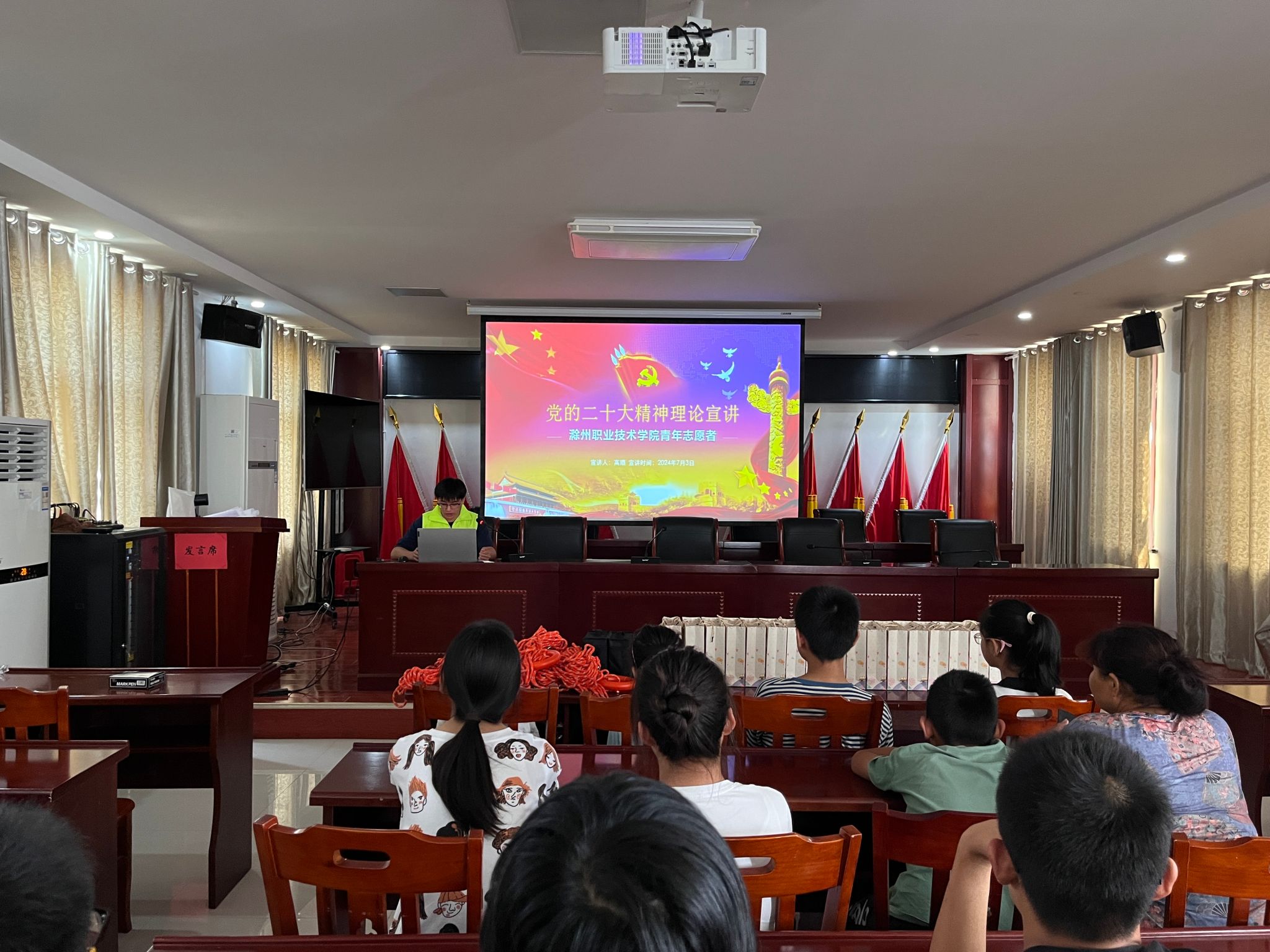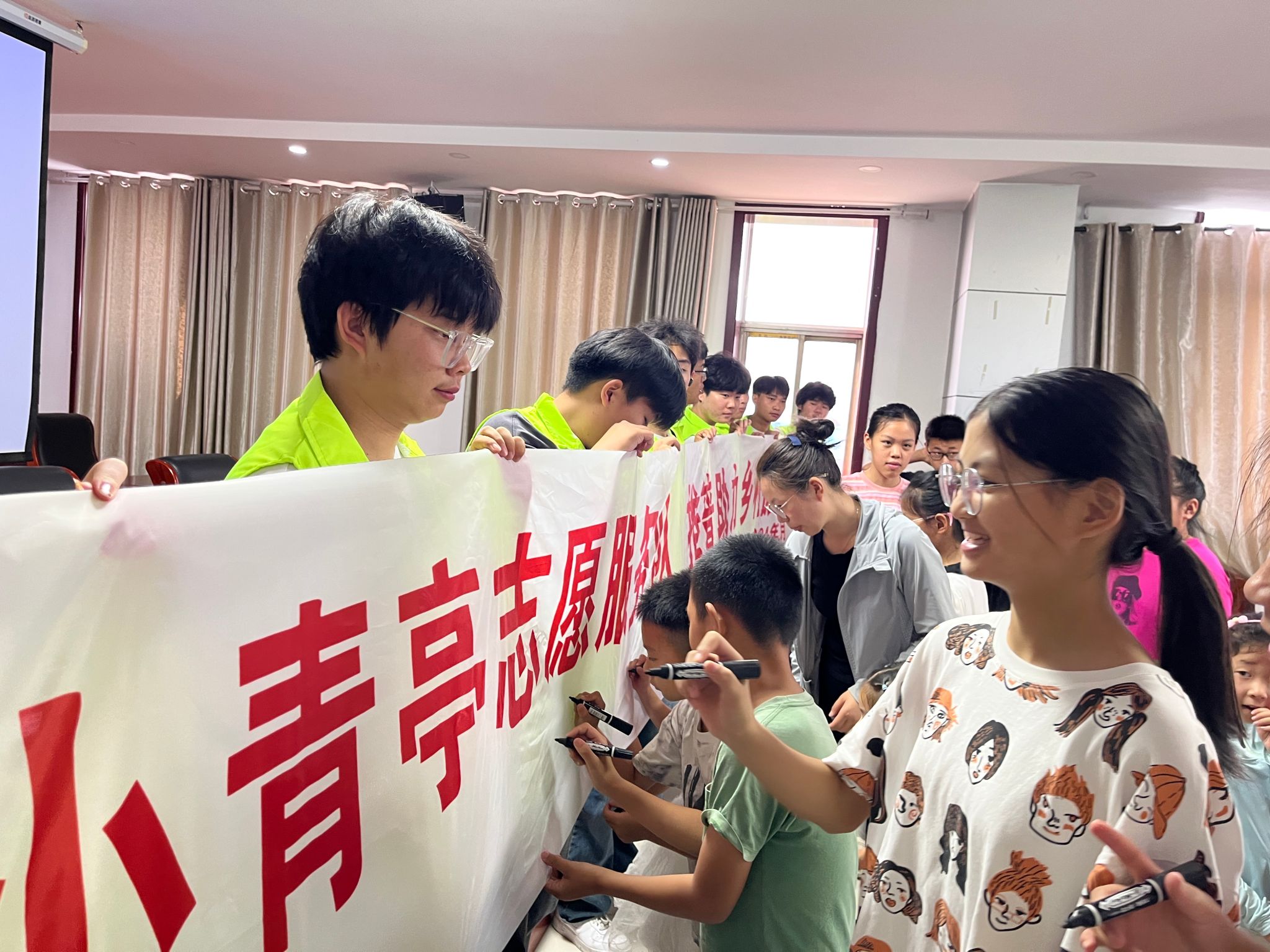 随着“宣讲习近平新时代中国特色社会主义思想和党的二十大精神理论宣讲、宣传习近平总书记关于乡村振兴、‘三农’工作的重要论述”宣讲的展开,系列宣讲活动拉开帷幕。本次系列宣讲包括爱国主义教育知识、防溺水、普通话普及等方面。在活动现场,实践队的同学们不仅准备了有趣的竞赛环节,还开展了横幅签名活动,通过横幅签名活动让学生们把推广普通话以及防溺水的宣传记在心头。