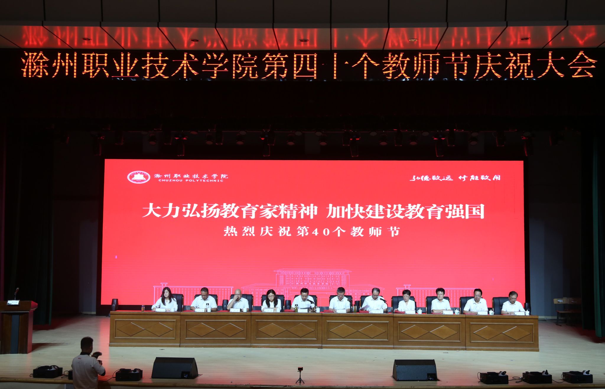 曹付忠强调,全校上下要大力弘扬教育家精神,建设高素质教师队伍,加快推进学校“双高校”建设。要加强政治建设,持续强化理论武装。要加强学习,不断提升教书育人能力。要涵养德行,不断加强师德师风建设。要立足岗位,争创一流业绩。全体教职工要更加紧密地团结在以习近平同志为核心的党中央周围,在市委市政府的坚强领导下,坚守立德树人的初心、厚植强国有我的情怀,踔厉奋发、锐意进取,奋力开创学校事业高质量发展新局面,以优异成绩迎接中华人民共和国成立75周年。