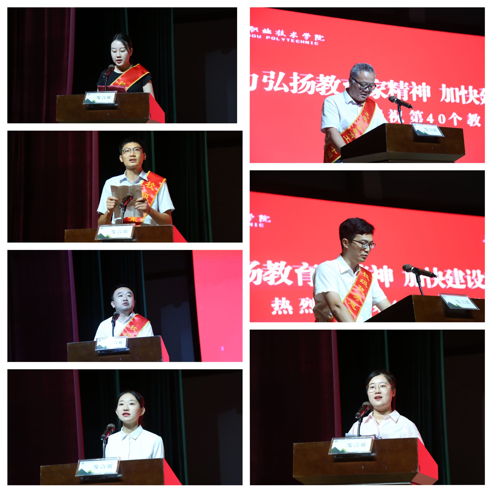 会上,优秀教师代表、优秀思政课教师代表、优秀辅导员代表、从教三十周年教师代表、博士教师代表依次上台分享教学感悟,纷纷表示以实际行动践行教育家精神。学生代表上台向老师们献词,表达敬爱与感激之情。