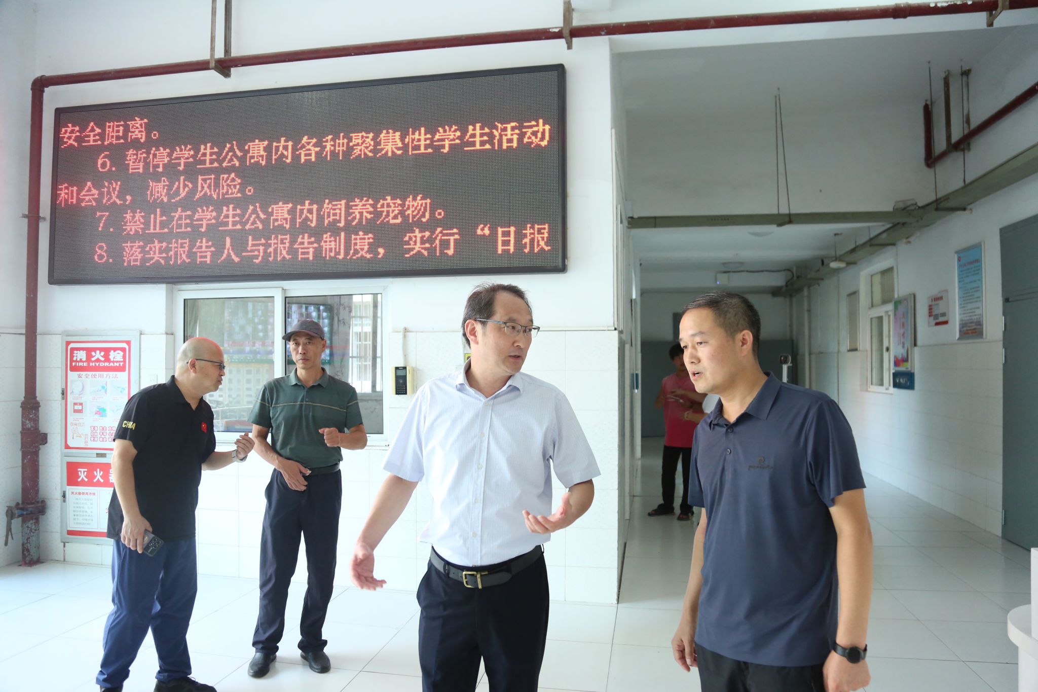 此次重点排查了校园东大门出入门禁管理、实验室试剂使用情况、宿舍用电等方面。针对大门管理情况,许雪峰指出,校门是校园安全第一道关口,相关部门要进一步提高政治站位,压实工作责任,做好入校人员信息登记,一旦发现问题及时处置、上报。在实验室安全检查中,许雪峰详细询问食环学院实验室安全管理现状和试剂使用及存放的问题,对实验室信息化管理提出建议意见。走访宿舍期间,许雪峰特别关注近期学生宿舍空调用电的负荷增长情况,要求相关部门迅速制定优化校内配电系统的整体方案,切实优化内部供电系统和用电负荷保障,高效完成增容送电,提高专项用电安全服务水平。