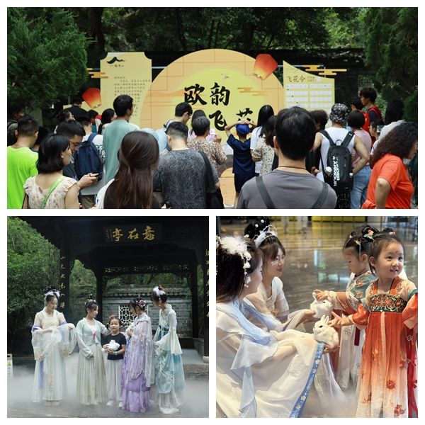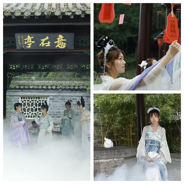 女生们身着精美的汉服古装,演绎嫦娥与玉兔的故事。她们优雅的姿态和生动的表演仿佛将嫦娥玉兔从神话中带到了现实。她们还热情地与游客进行合影留念,记录下这美好的瞬间。游客们在与“嫦娥玉兔”互动合影的过程中,脸上洋溢着开心的笑容,感受到了传统节日的欢乐氛围,这种独特的体验成为了他们在景区游玩过程中难忘的记忆。