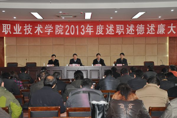 院长李柱梁代表学院领导班子作了述职述廉报告,着重从党建与思想政治工作、2013年度学院各项工作、党风廉政建设和反腐败工作,以及学院发展过程中存在的问题等方面作了全面细致的报告。他同时表示,在新的一年里,学院将以第二批党的群众路线教育实践活动开展为契机,以全面推进省级示范高职院校建设为抓手,坚持以科学发展观统领学院改革发展稳定大局,加大现代大学制度建设力度,全面提高教育教学质量,实现“省内一流、国内知名、富有特色”高职院校目标,为更好服务滁州经济发展做出新的更大贡献。