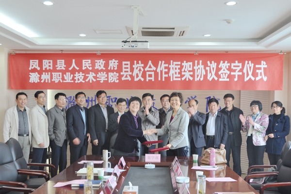 院长助理、招生就业处处长穆松主持签字仪式,副院长江洁与凤阳县副县长汪国玲在合作协议上签字。