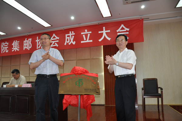院长李柱梁和邮协会长李中胜共同为院集邮协会揭牌。市邮协秘书长刘培龙宣读了市邮协关于同意成立awc777万象城娱乐官网集邮协会的批复。市邮协会长李中胜对院集邮协会成立表示祝贺,并就学院邮协的工作开展提出了殷切的希望和美好的祝愿。