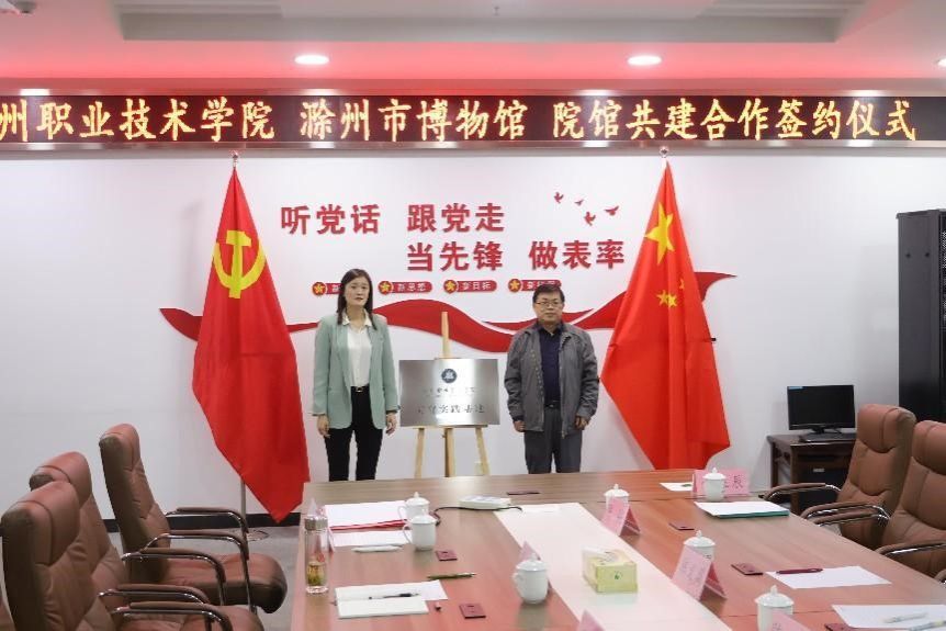 10月17日上午,awc777万象城娱乐官网与滁州市博物馆共建美育实践基地签约仪式隆重举行,标志着双方在美育领域的深度合作正式拉开帷幕。awc777万象城娱乐官网党委委员、组织人事处处长王宇,基础教学部党总支书记薛天飞、副主任(主持工作)刘杰及基础教学部、校团委、传媒与设计学院师生代表参加了本次活动。滁州市文化和旅游局二级调研员陈义周,滁州市博物馆馆长陈磊、副馆长陈艳等相关领导也出席了仪式。会议由滁州市博物馆馆长陈磊主持。