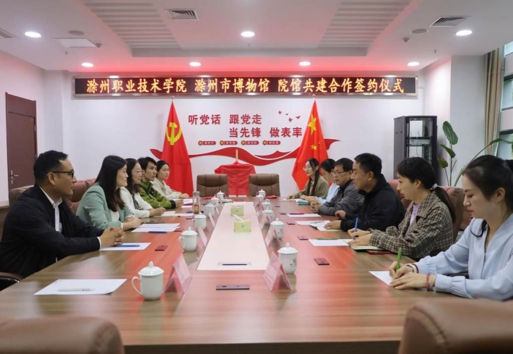 会上,陈磊首先介绍了博物馆参会人员以及博物馆基本情况,让大家对滁州市博物馆有了更深入的了解。随后,王宇介绍了学校及美育教学基本情况,双方就共建美育实践基地进行了深入交流。陈义周指出,本次协议的正式签约,不单单是馆校合作的崭新起点,更是知识与实践深度融合、文化传承与创新协同推进的生动实践。