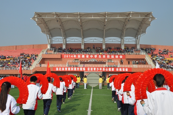2014年安徽省中学生田径运动会为期3天,来自全省16个地市、两个省直管县共有18支代表队300多名选手参加。本次比赛由安徽省教育厅、安徽省体育局等单位共同举办。比赛设100米、200米、400米、800米、1500米、3000米、5000米、110米栏、跳高、跳远、三级跳、铅球等项目。目前已抵达滁城,将于9日至11日展开激烈角逐,展示我省青少年的风采。