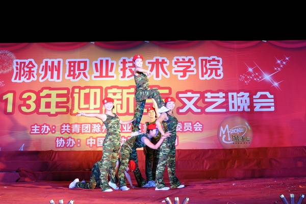 “琅琊山下,学府宏张。走来的我辈就是不一样。职技历身,不息自强……”,伴随着校歌《江山代有才人出》,迎新晚会正式拉开帷幕。正所谓“江山代有才人出,各领风骚数百年”,学院秉着“修能致用,笃学致远”为社会培养了一批又一批的人才。院合唱队自豪而响亮的歌声感染了现场包括新生、教官和各位领导在内的每一位观众。开场舞《龙腾盛世 鼓舞青春》激情洋溢、活力四射,鼓声铿锵有力,随着音乐抑扬顿挫,舞狮和舞龙的加盟更加带动现场活跃的气氛。校园十佳歌手张玲演唱《看的最远的地方》,“我要在看得最远的地方,披第一道曙光在肩膀,被泼过太冷的雨滴和雪花,更坚持微笑要暖得像太阳”,歌词也寓意着在面对困难和挫折要时刻保持乐观心态。大学生艺术团表演的《凤阳花鼓》则极具本土特色,小巧玲珑的花鼓伴随着舞步将欢快演绎得淋漓尽致,让身在滁州的同学无不感到自豪。