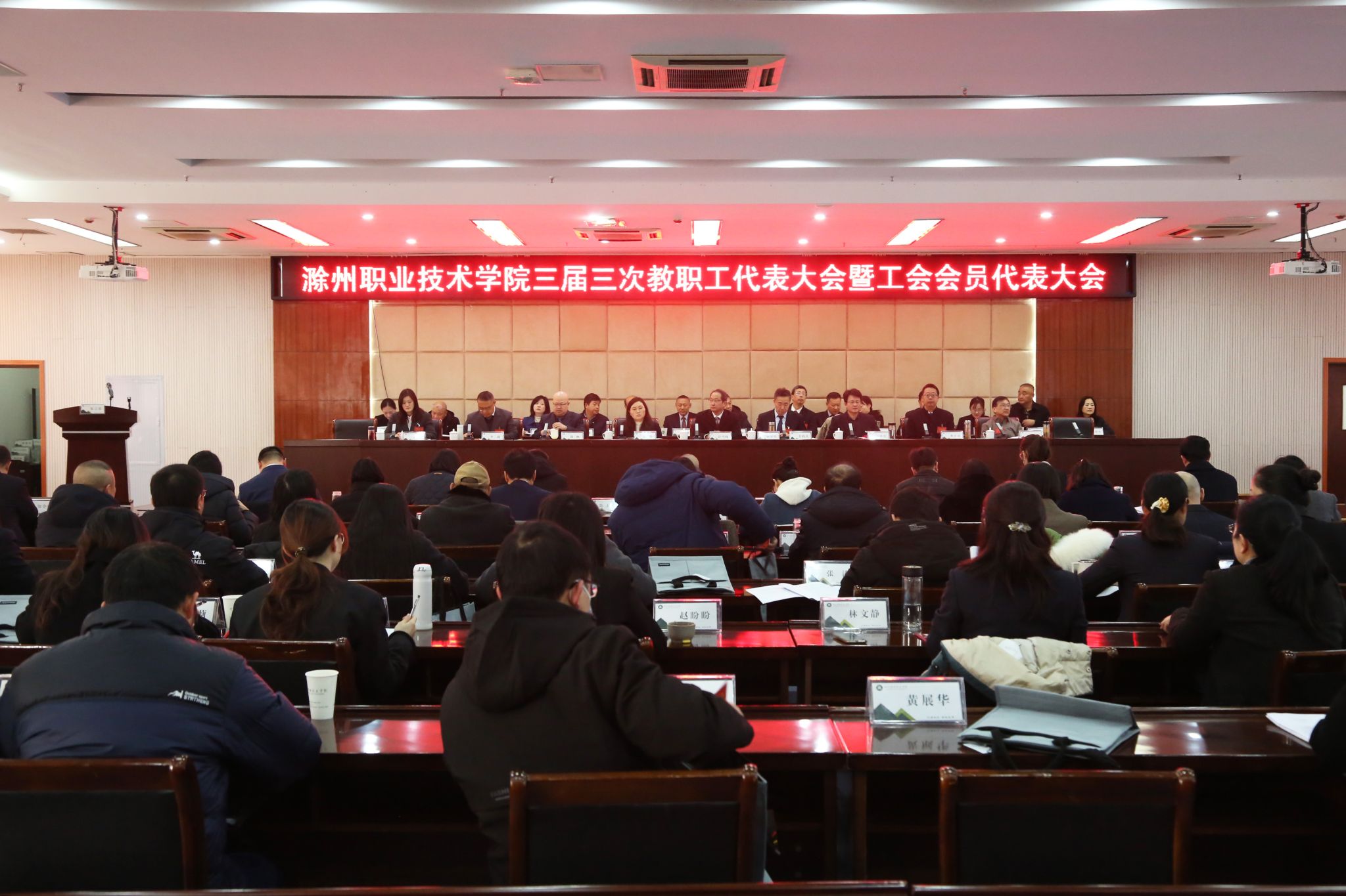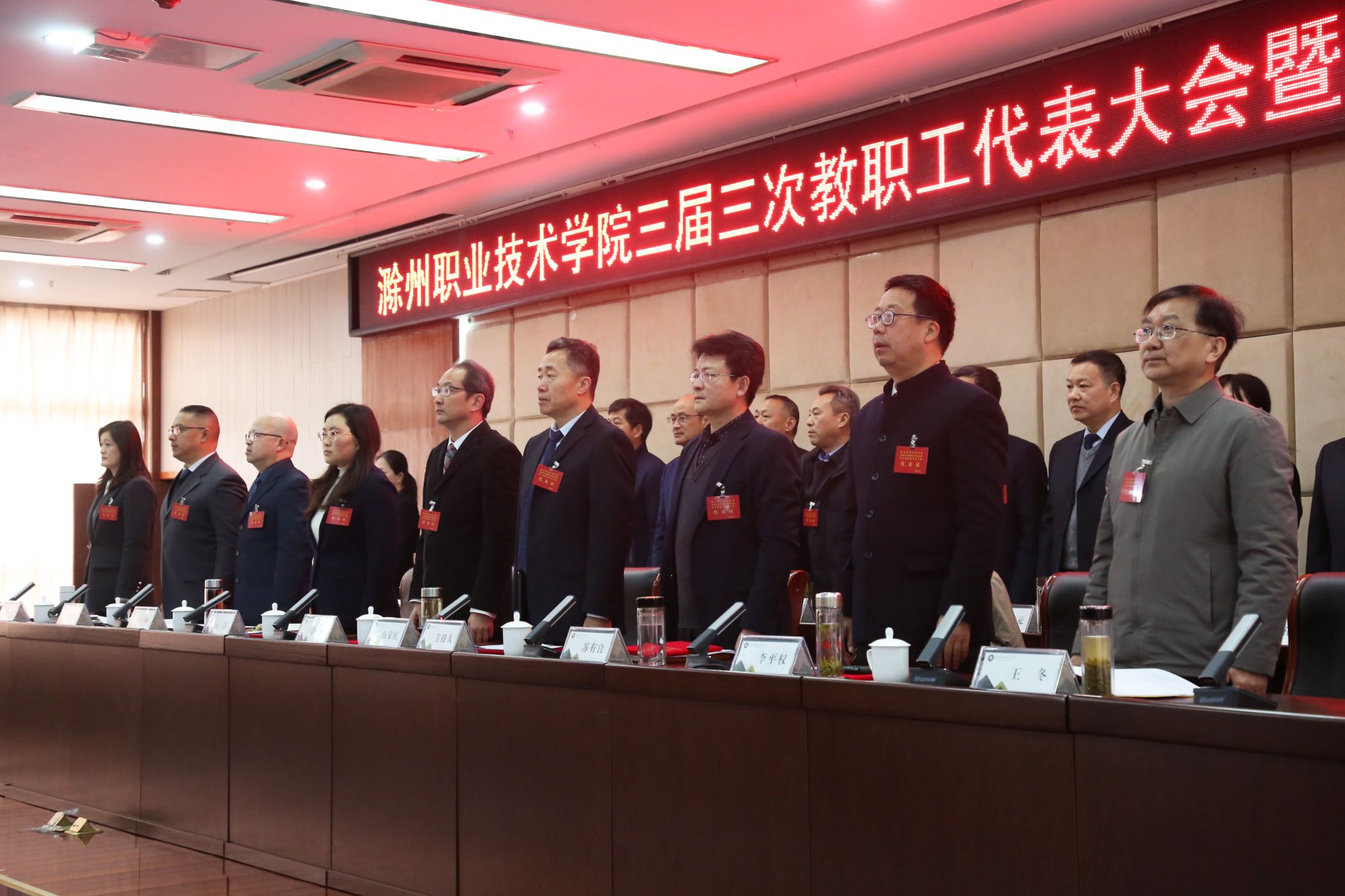 awc777万象城娱乐官网三届三次教职工代表大会暨工会会员代表大会在庄严的国歌声中胜利闭幕。