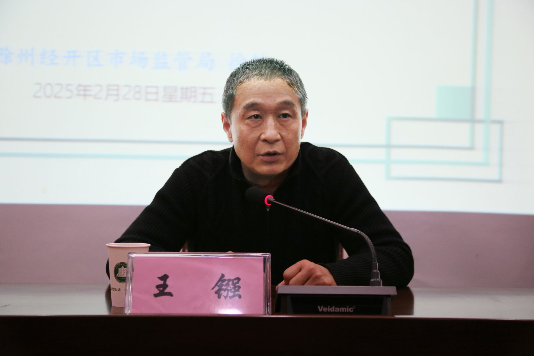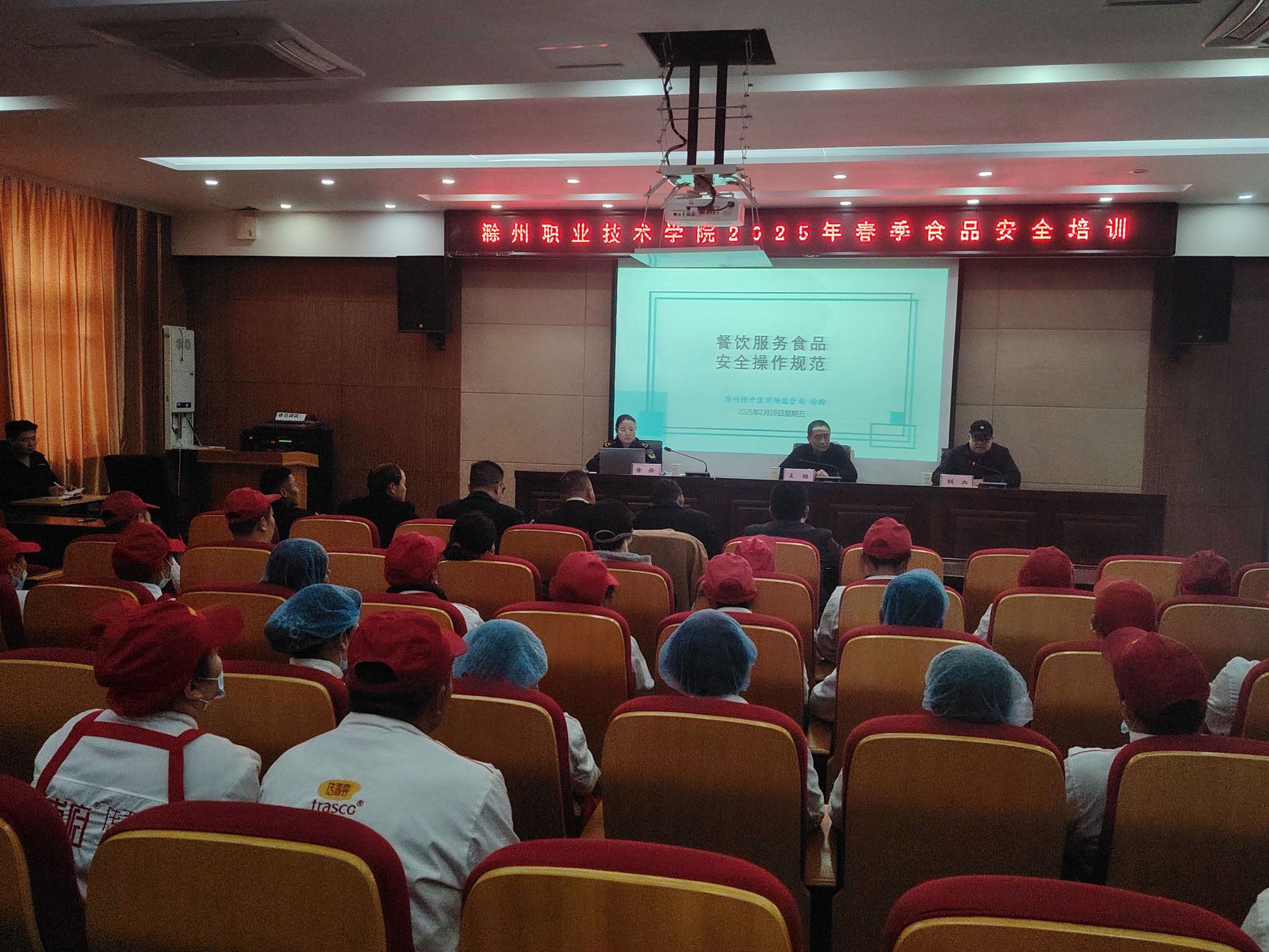 为进一步加强学校食品安全管理工作,2月28日,学校邀请市经开区市场监督管理局食品监管科科长徐龄为学校餐饮企业人员开展2025年春季食品安全培训。校党委委员、副校长胡凼,市经开区市场监督管理局副局长王镪、后勤服务中心主任顾宏才以及学校食堂全体服务人员参加了培训会。