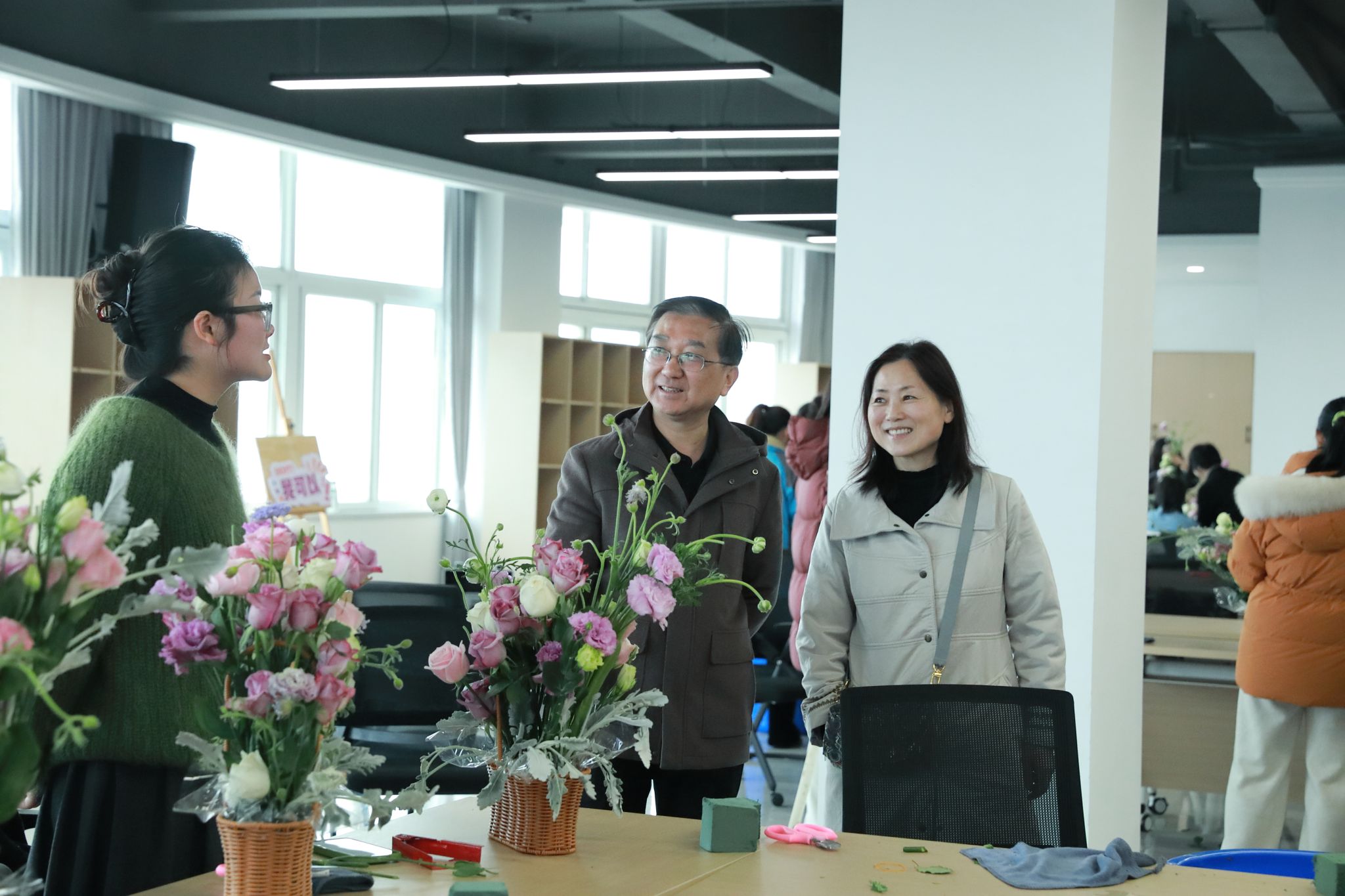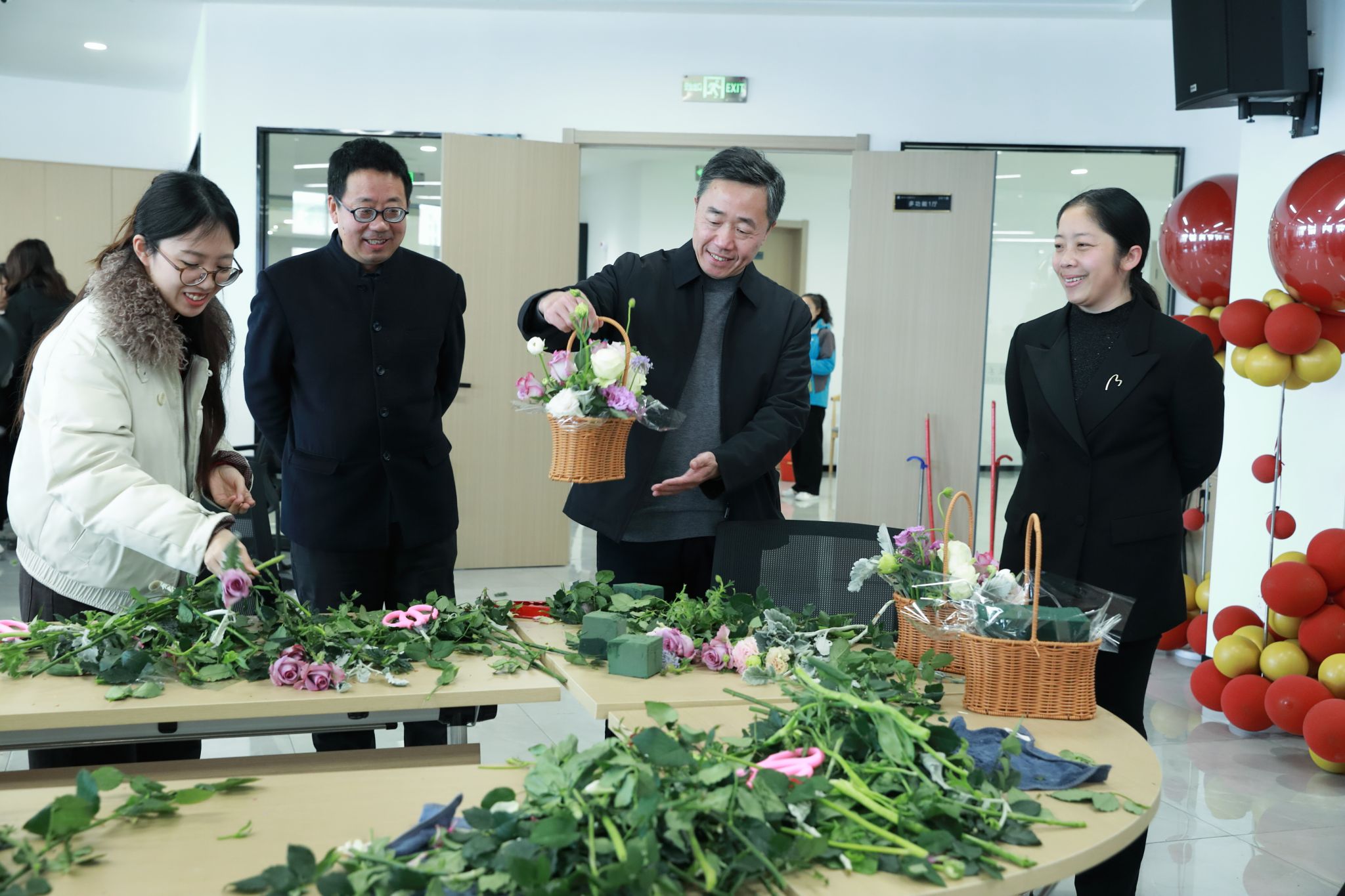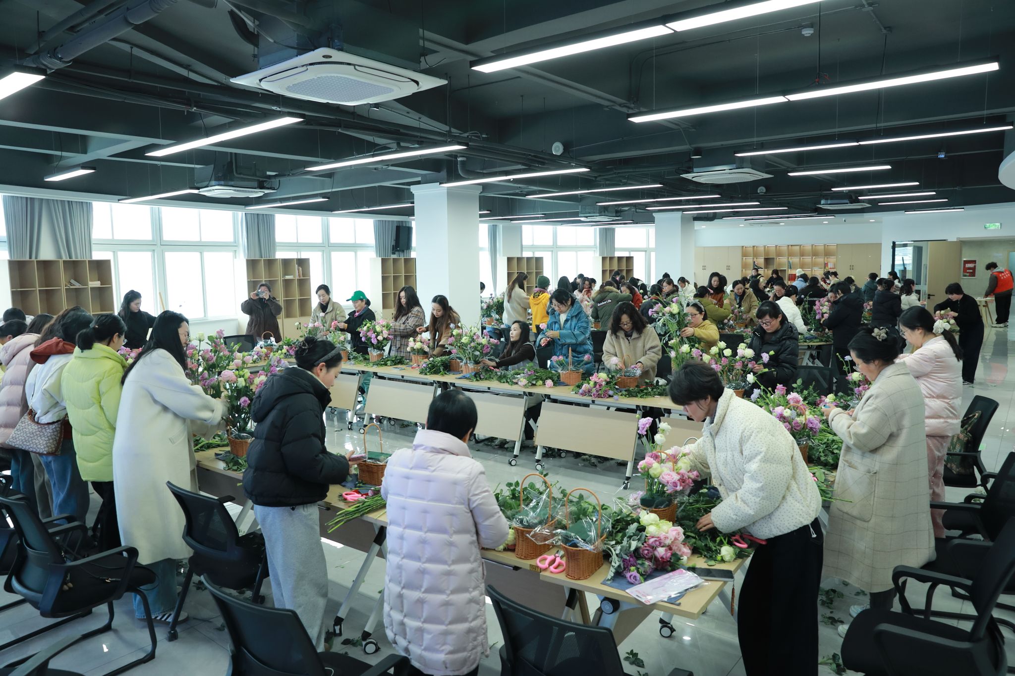 在第115个“三八”国际劳动妇女节到来之际,丰富女性教职工的精神文化生活,提升艺术修养和生活情趣。3月7日上午由校工会、校妇联主办,校工会女工委、食环学院分工会承办的“拾趣春意 花间雅集”花艺活动在awc官网教职工活动中心顺利举办。校领导杨家庆、胡凼、李平权、李超、王冬、王宇出席活动,全校200余名女教职工参加了活动。